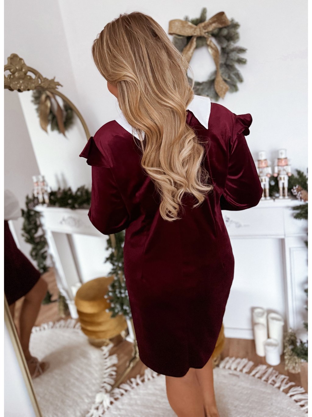 Sametové šaty s dlouhými rukávy jsou elastické. Modelka měří 168 cm a má na sobě velikost XL/XXL.