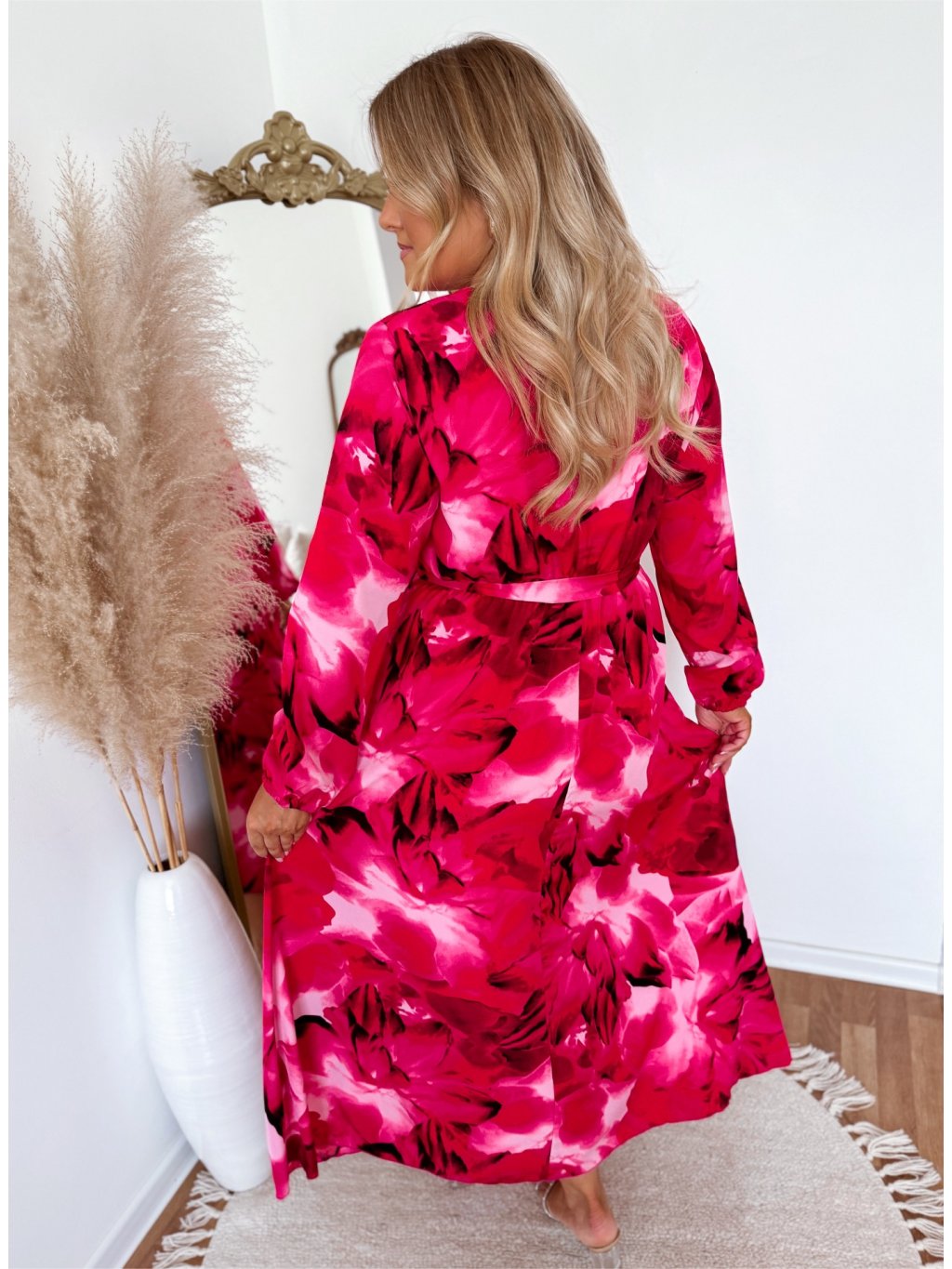 Dlouhé šaty s květinami - růžová