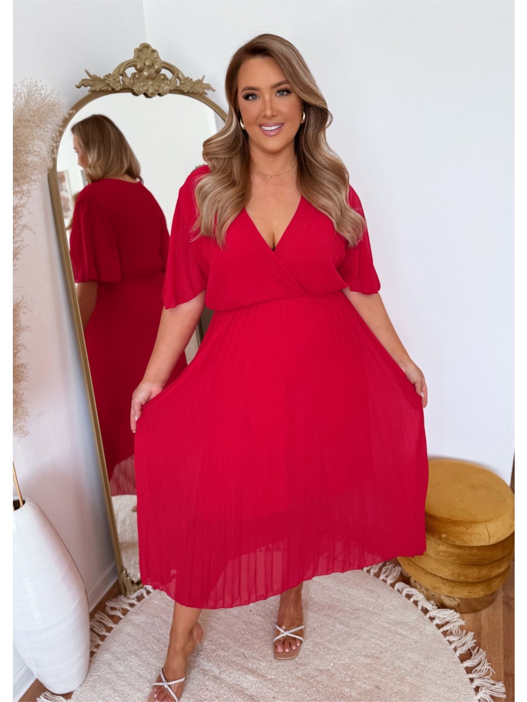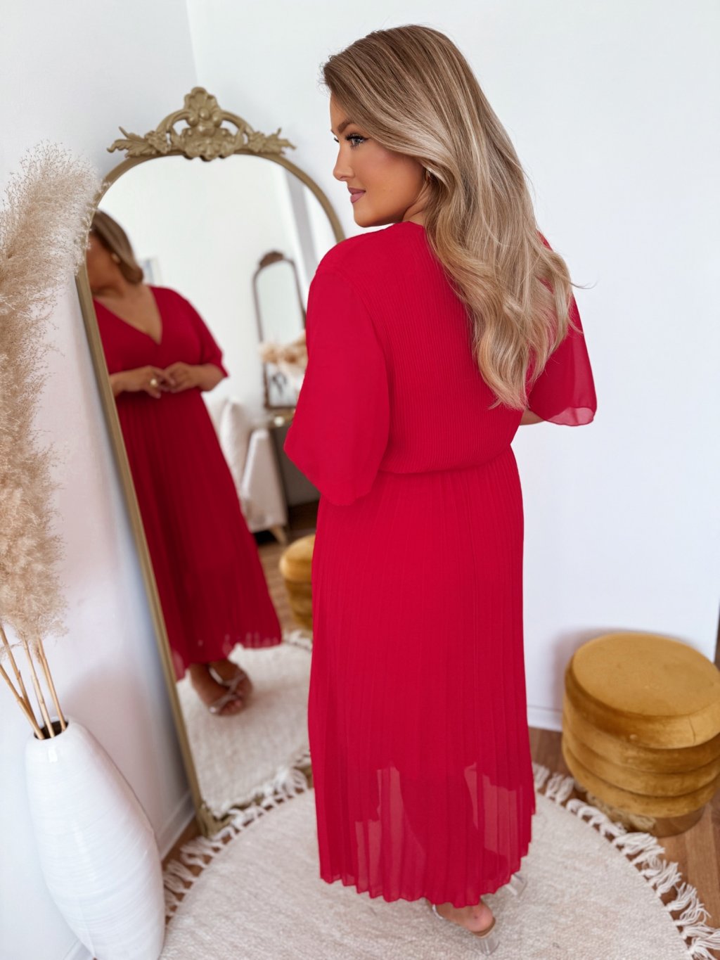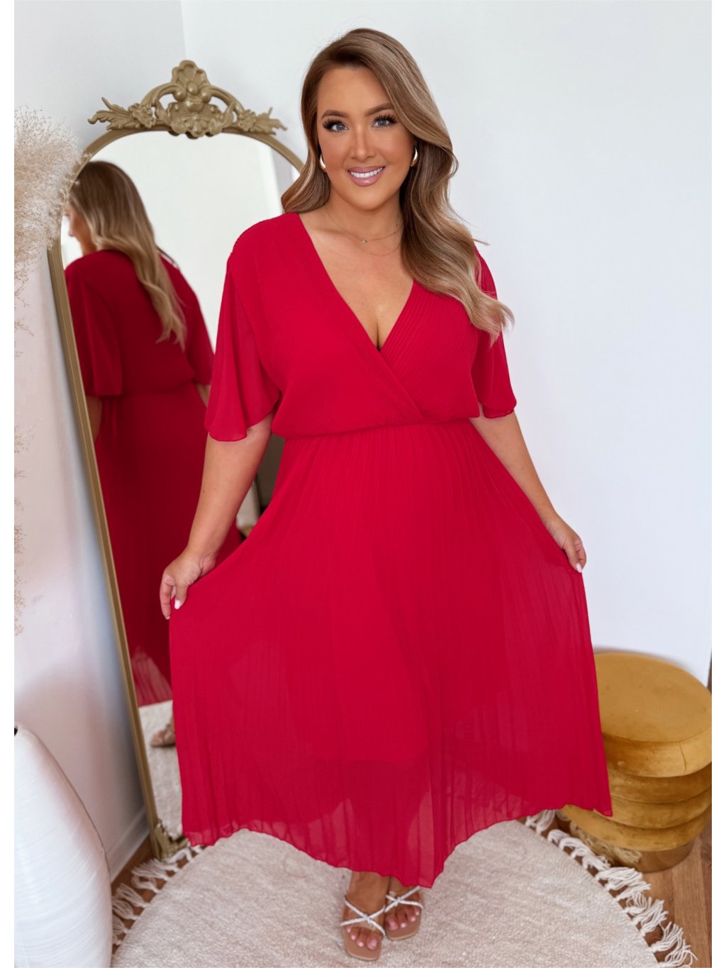 Elegantní plisované šaty s krátkými rukávy. Šaty mají volnější střih a pružný pásek v pase. Modelka měří 168 cm a má na sobě velikost XL/XXL.