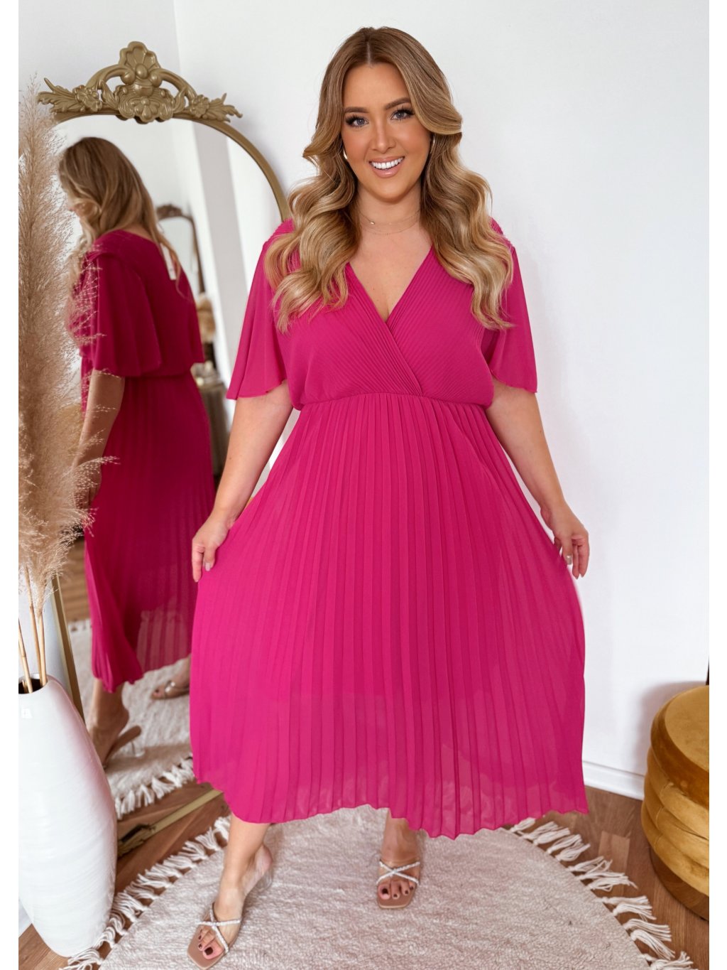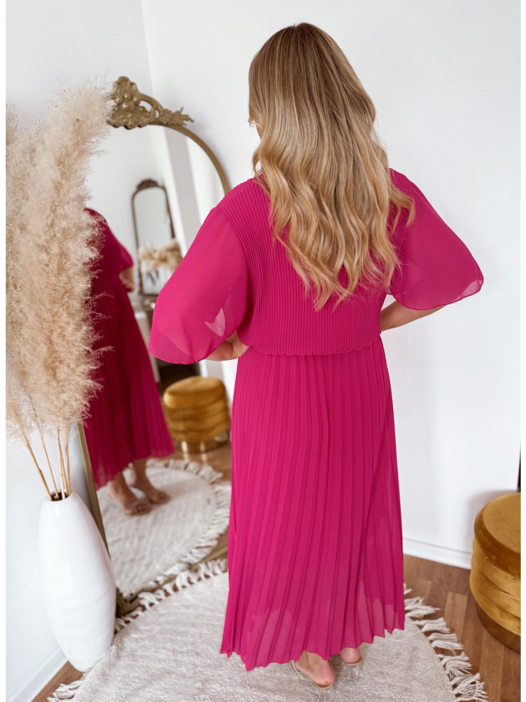 Plisované šaty s krátkým rukávem - zářivě růžová