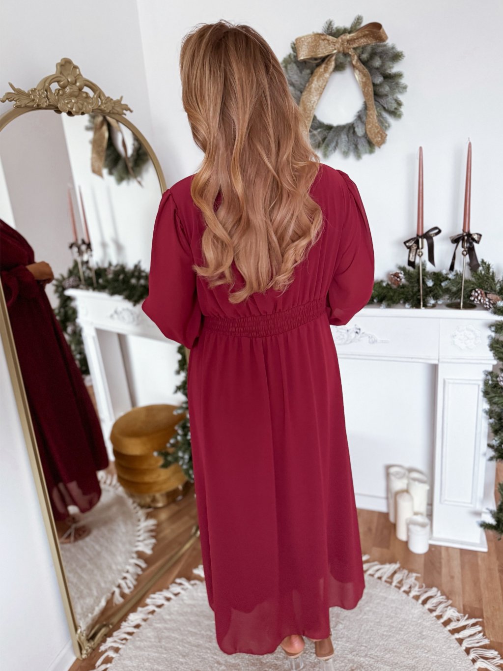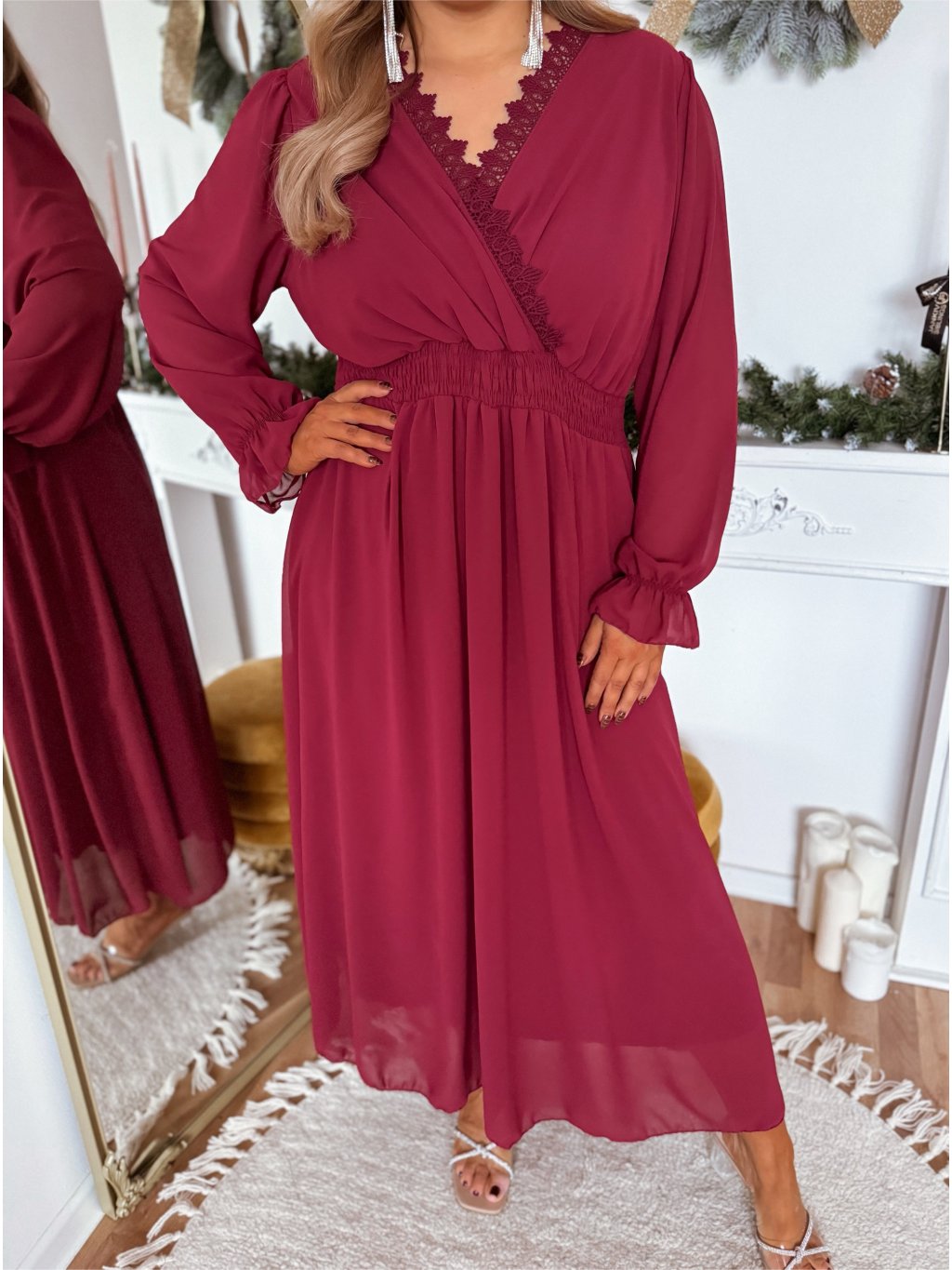 Elegantní dlouhé šaty s dlouhými rukávy. Šaty mají volnější střih a pružný pásek v pase. Modelka měří 168 cm a má na sobě velikost XL/XXL.