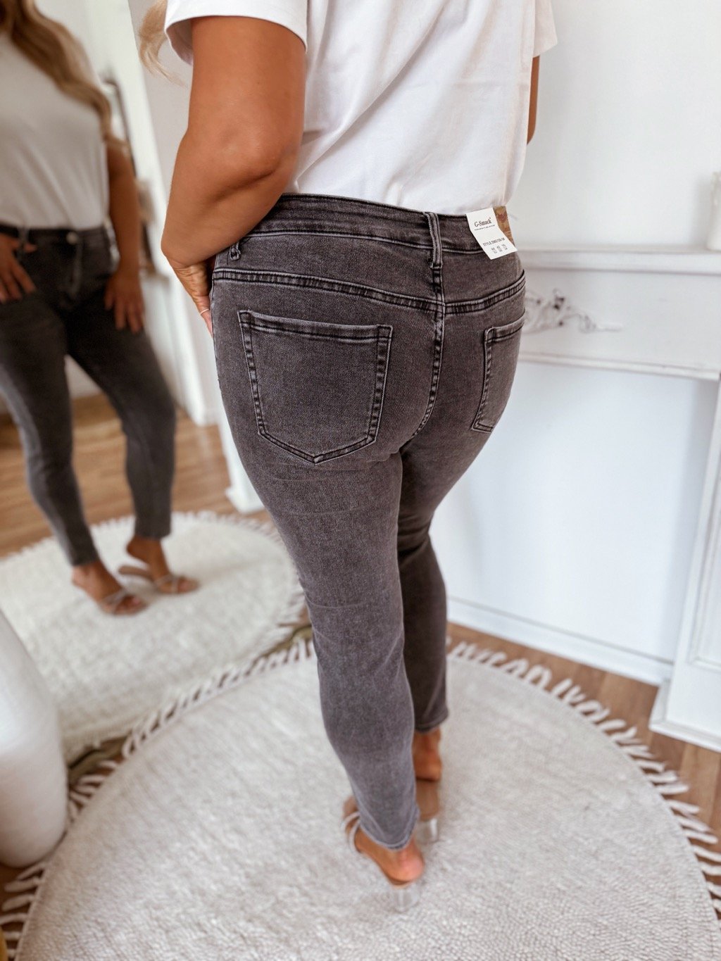 Šedé džíny s vysokým pasem a skinny kalhotami pro plnoštíhlé jsou vyrobeny z elastického denimu, který se přizpůsobí postavě a zajistí pohodlí po celý den. Univerzální střih snadno zkombinujete s elegantním topem i ležérním tričkem. Modelka měří 168 cm a má na sobě velikost 44.