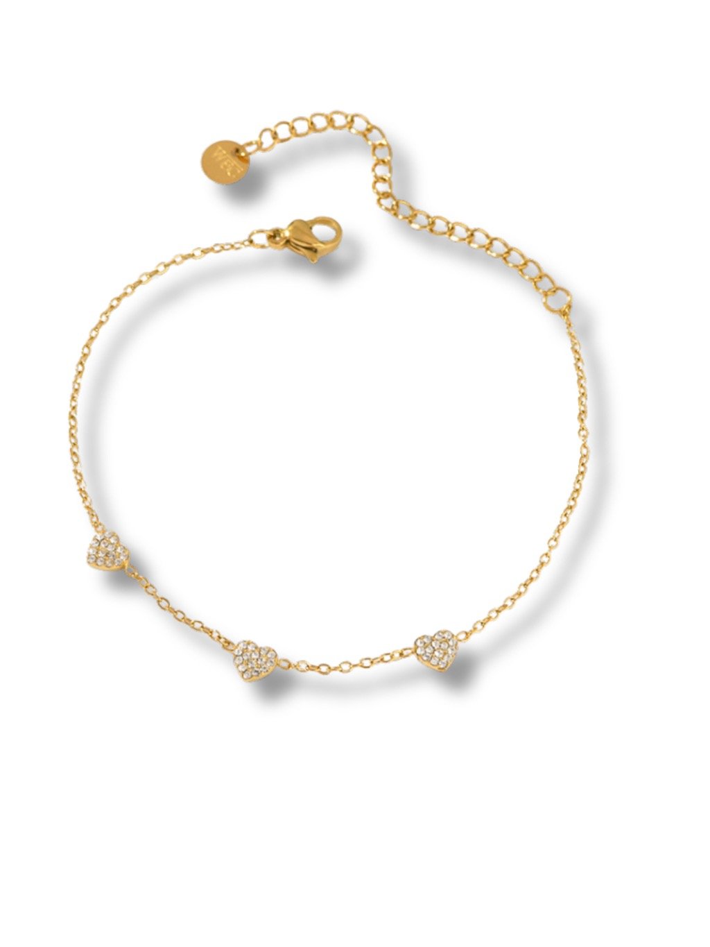 Náramek ve zlaté barvě s jemnými srdíčky ze zirkonů působí romanticky a elegantně. Díky svému univerzálnímu designu je ideálním doplňkem pro každodenní nošení i speciální příležitosti a krásně se kombinuje s náhrdelníkem ve stejném stylu.