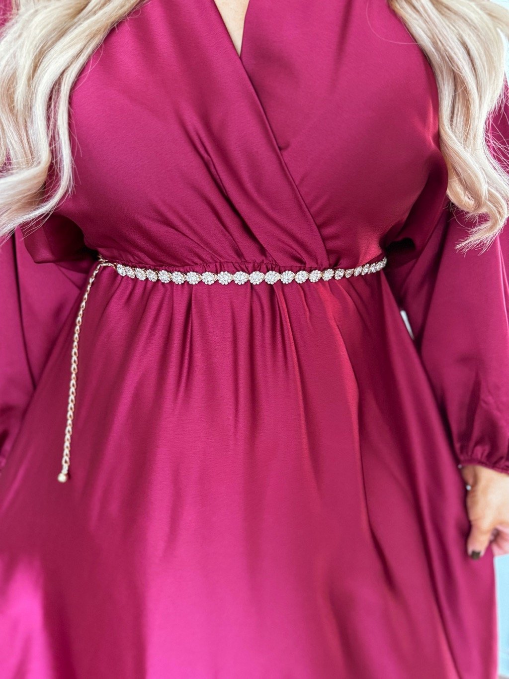 Elegantní pásek se zdobením a stříbrným řetízkem dodá šatům luxusní nádech. Díky univerzální velikosti se hodí ke společenským, svatebním i večerním outfitům a krásně zvýrazní pas.