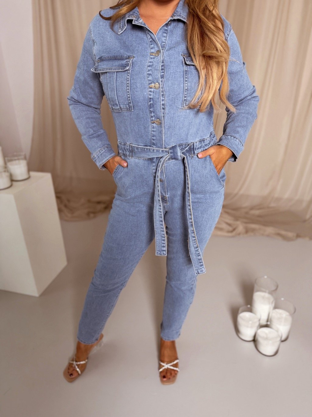 Stylový elastický overal s gumou v pase. Tento overal je elastický. Modelka měří 168 cm a má na sobě velikost 42.