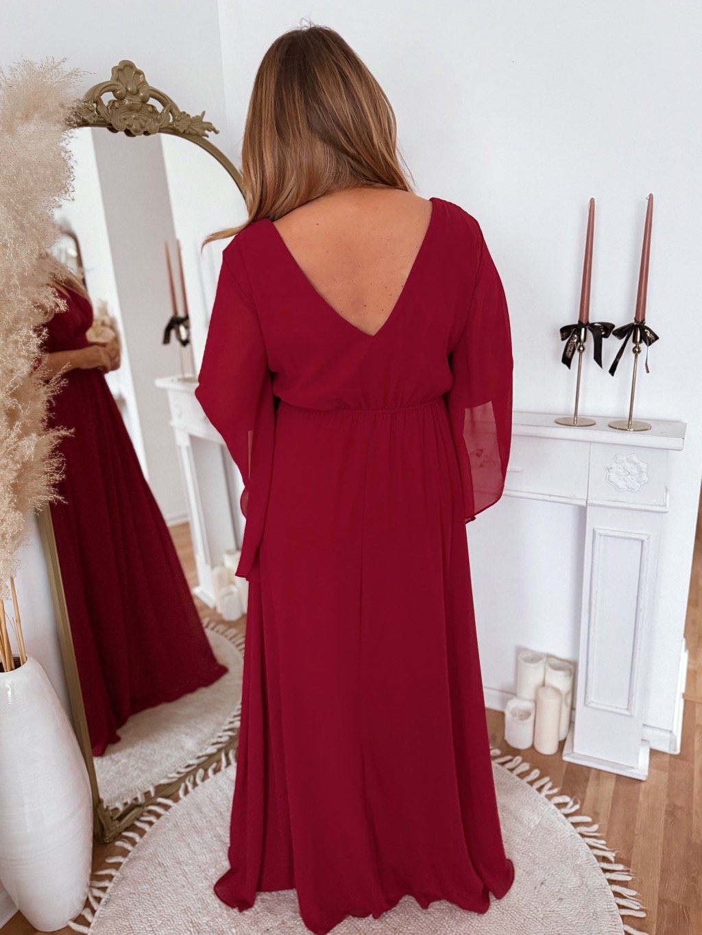 Bordové společenské s výrazným rukávem
