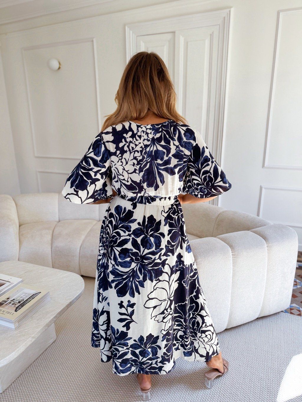 Elegantní dlouhé šaty s květinovým vzorem, lichotivým výstřihem do V a opaskem pro zvýraznění siluety. Ideální pro letní oslavy a speciální příležitosti. Šaty mají v pase gumičku. Modelka měří 168 cm a má na sobě velikost XL.