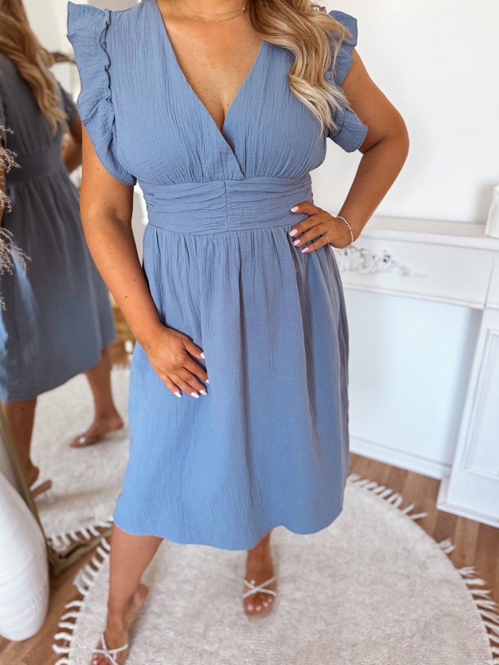 Letní bavlněné plus size šaty s krátkými rukávy, šaty jsou mírně elastické a mají pružný pas. Modelka měří 168 cm a má na sobě velikost XL.