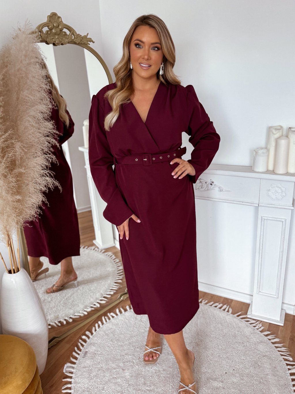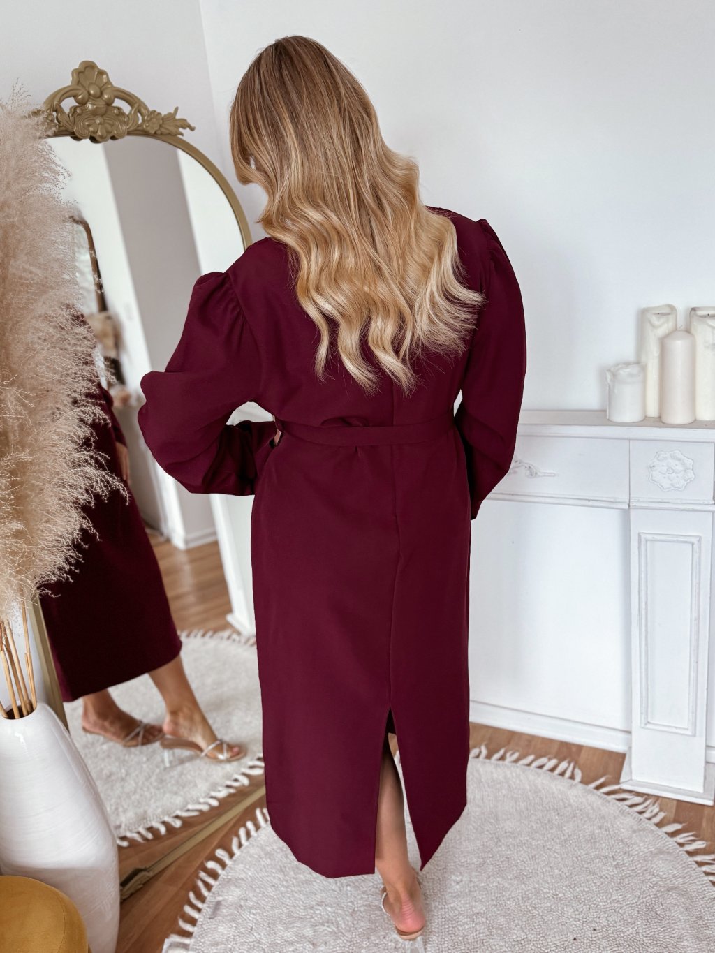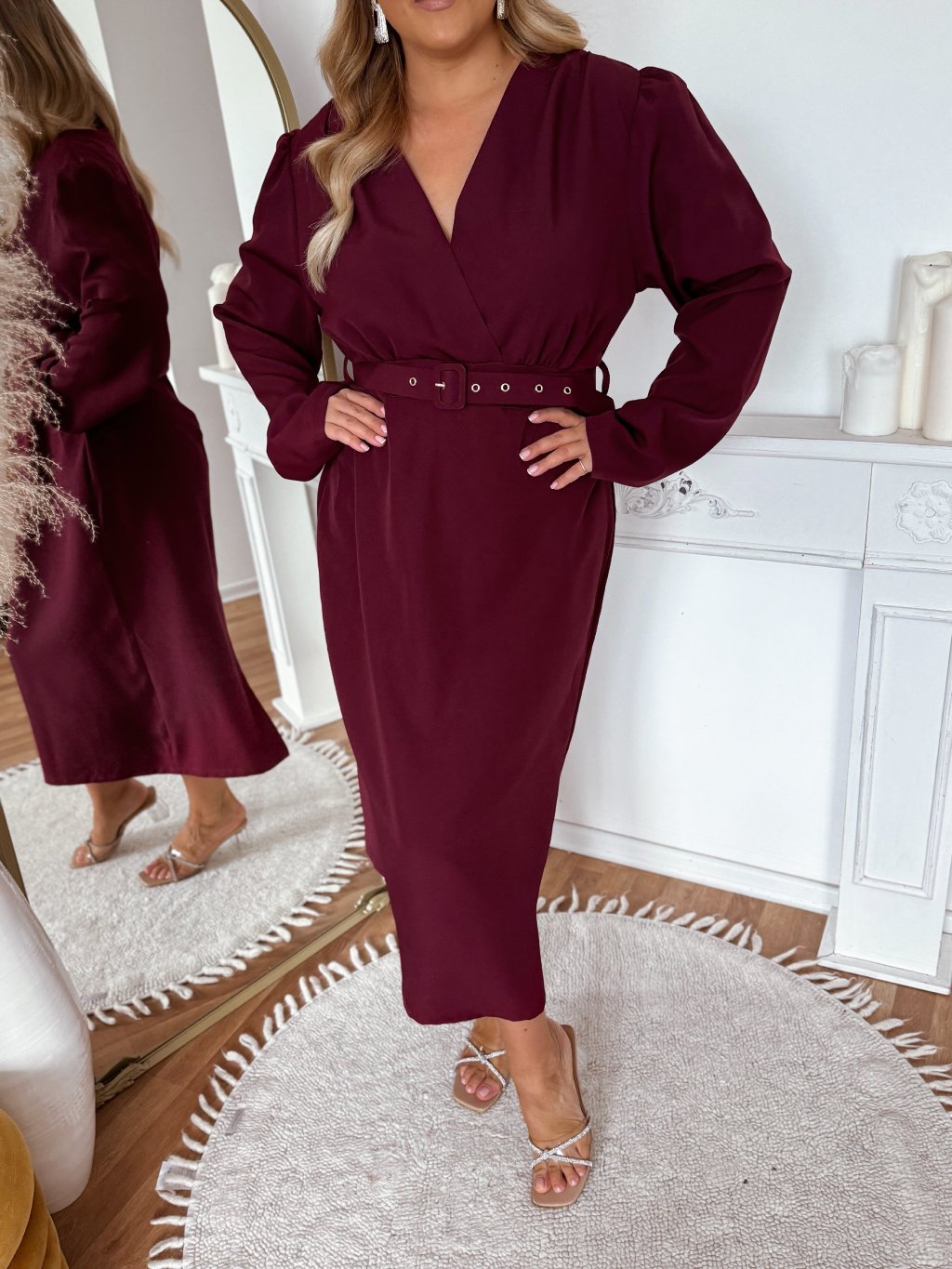 Midi šaty pro plnoštíhlé s dlouhým rukávem, který je nabraný na ramenou. Šaty mají volnější střih a stahují se páskem v pase. Vzadu najdete decentní rozparek. Šaty jsou vhodné pro velikosti XL- 4XL. Modelka měří 168 cm a má na sobě univerzální velikost.
