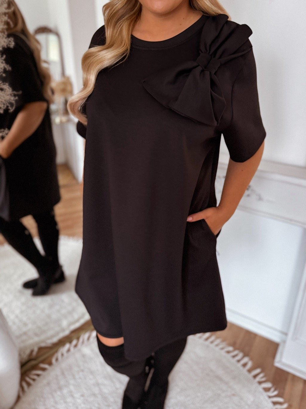 Elastické dámské šaty s kapsami mají volný střih a přizpůsobí se postavě. Modelka měří 168 cm a má na sobě velikost XL/XXL.