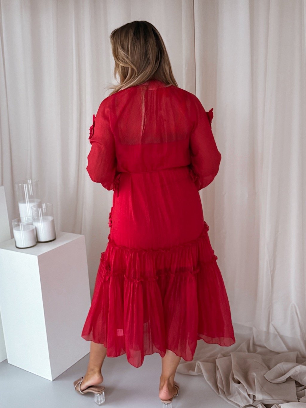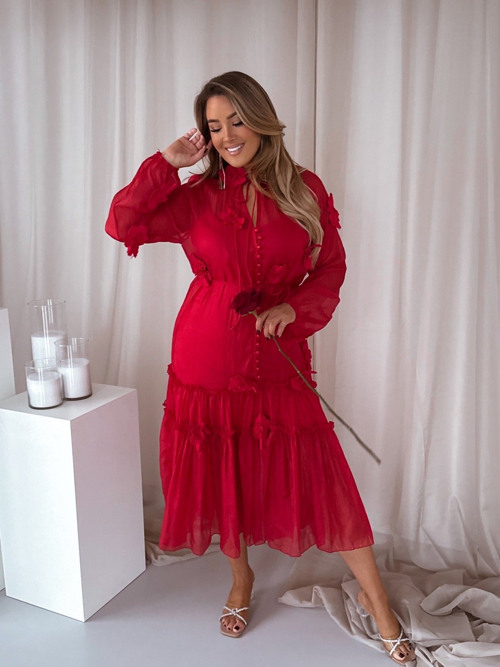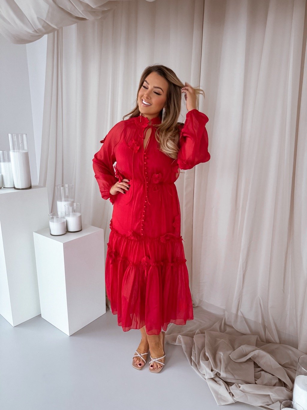 Červené šaty s květinami