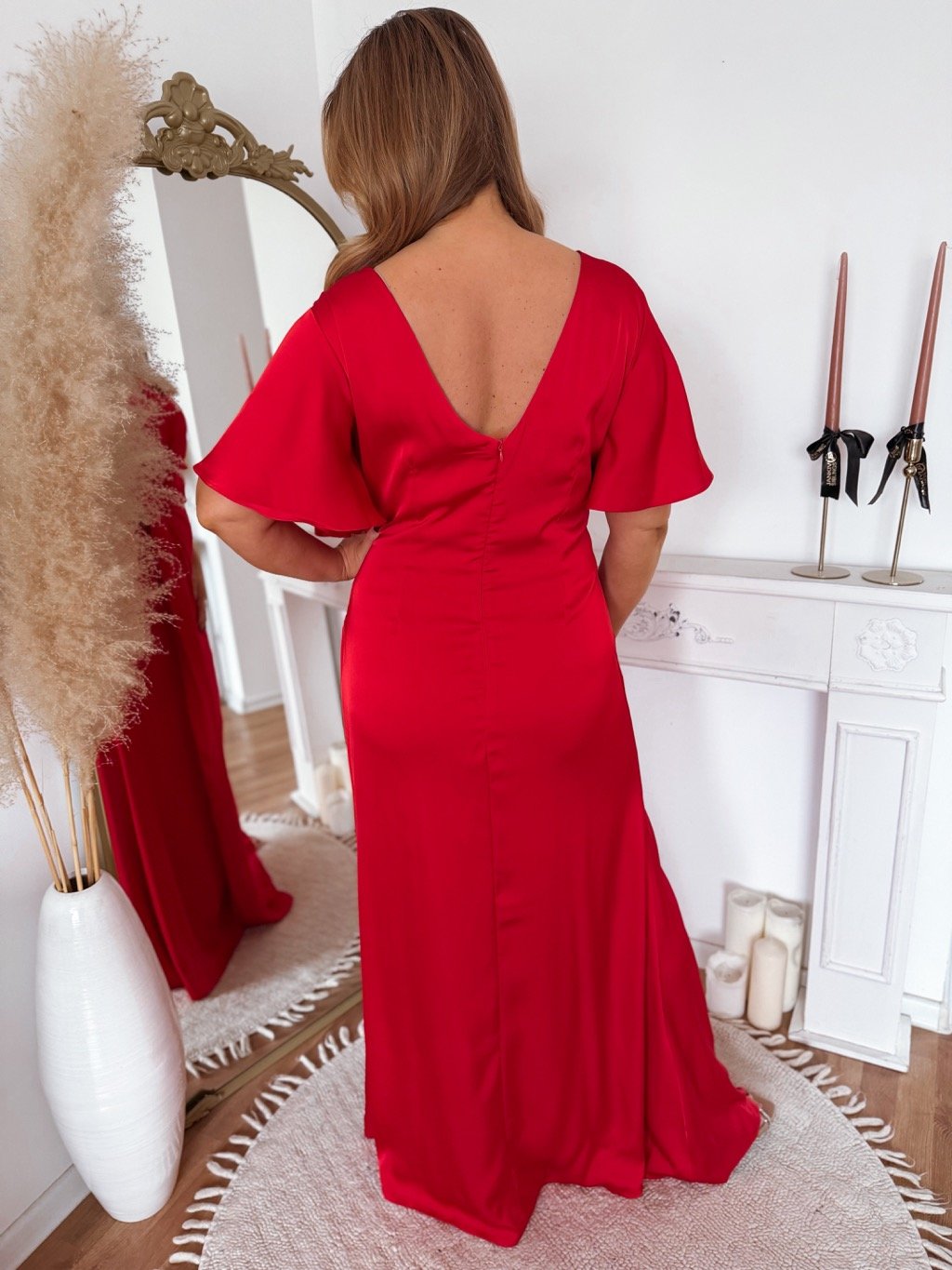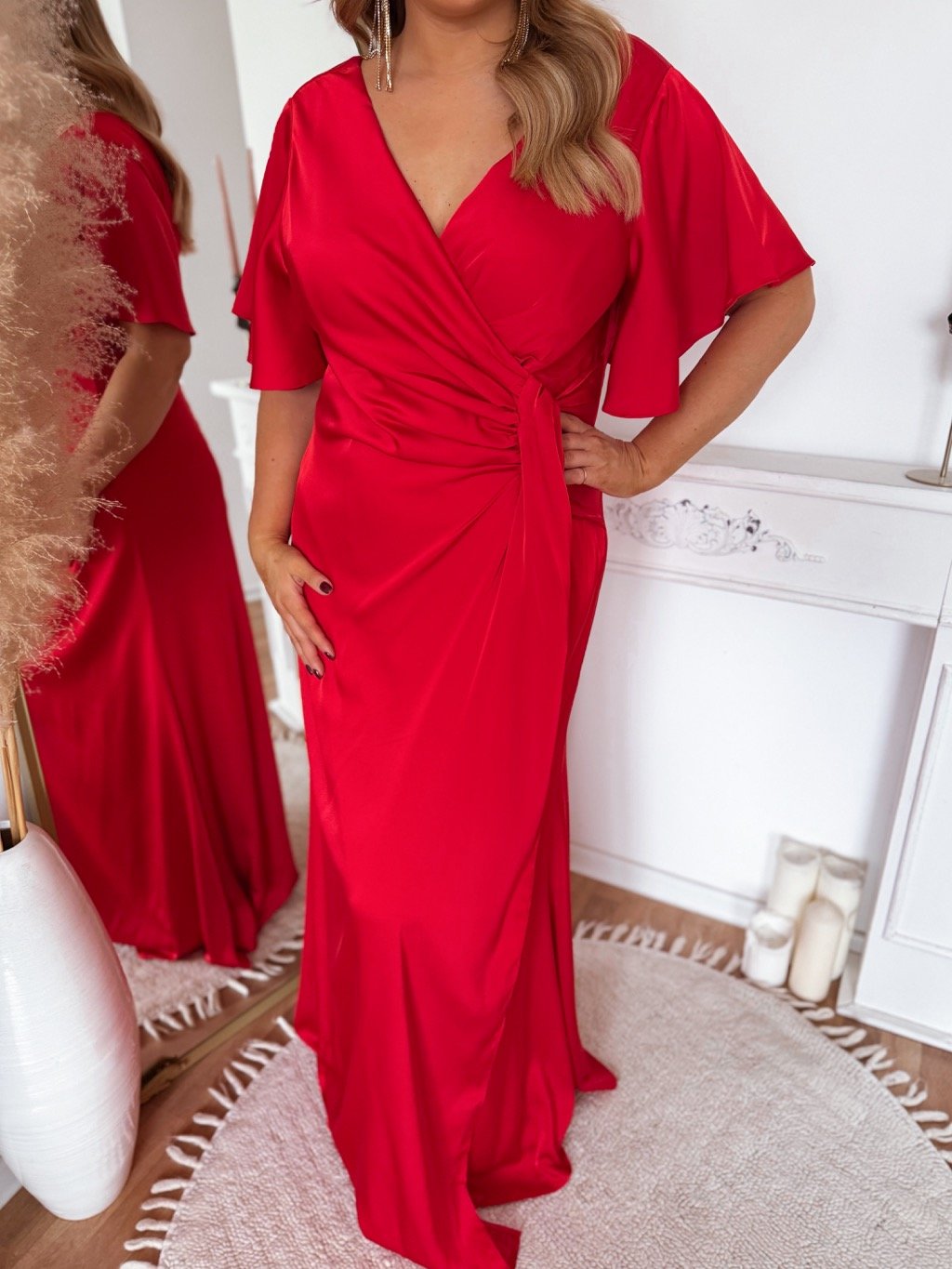 Dlouhé společenské šaty pro plnoštíhlé s krátkým rukávem. Šaty mají na zádech zip a na hrudi měkkou pěnovou vycpávku. Modelka měří 168 cm a má na sobě velikost XL.