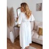 Dlouhé bílé šaty s páskem a krátkým rukávem