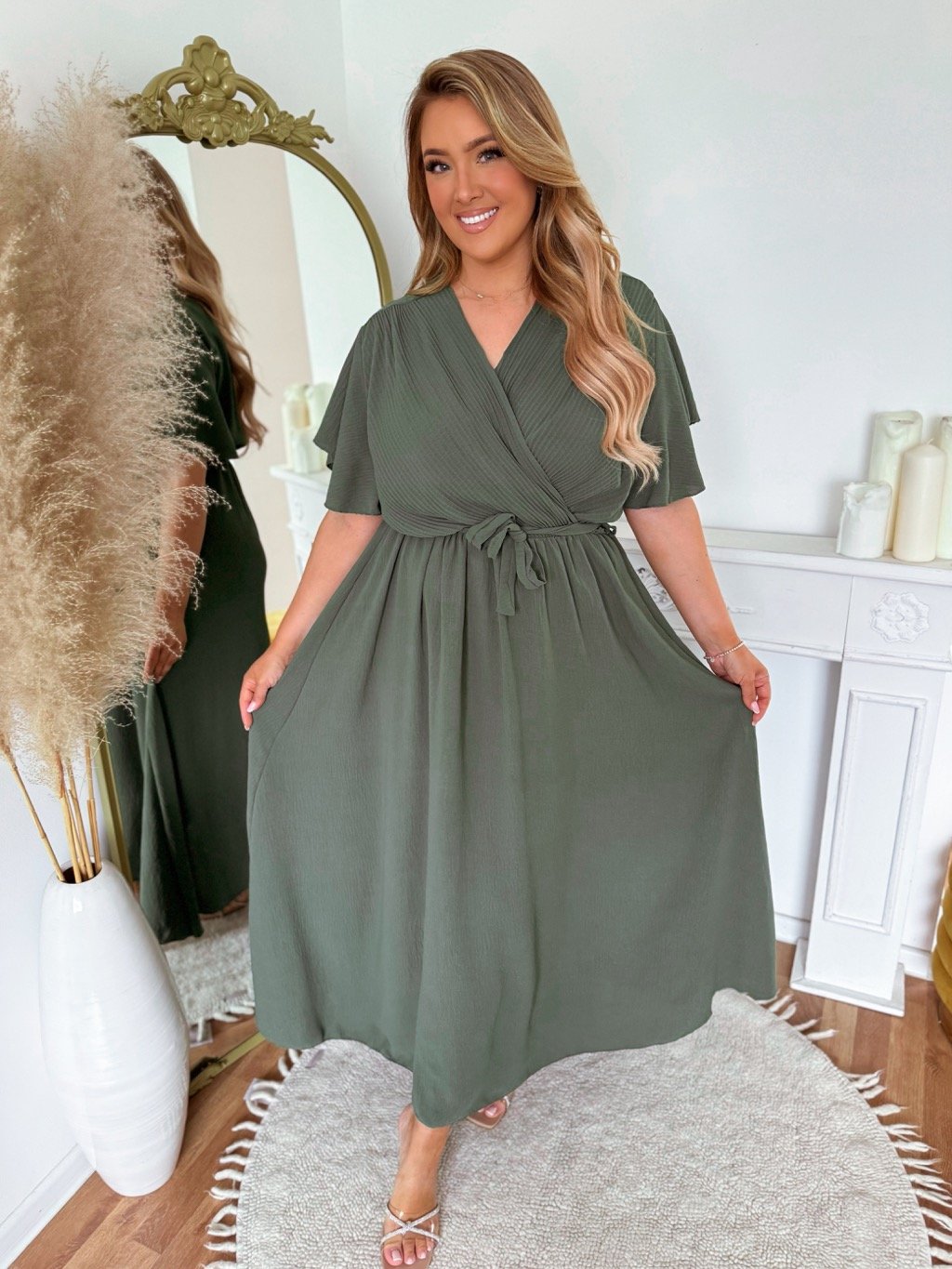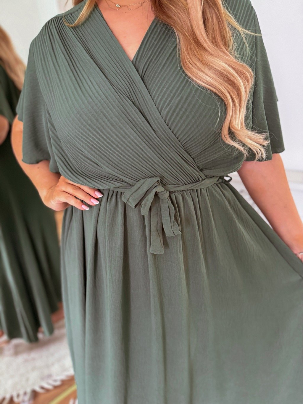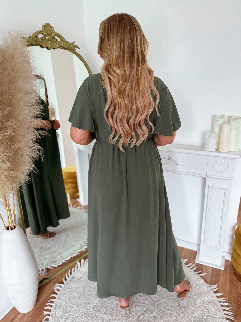 Dlouhé šaty s krátkým rukávem mají volnější střih, jsou elastické a mají elastickou gumičku v pase. Modelka měří 168 cm a má na sobě velikost XL/XXL.