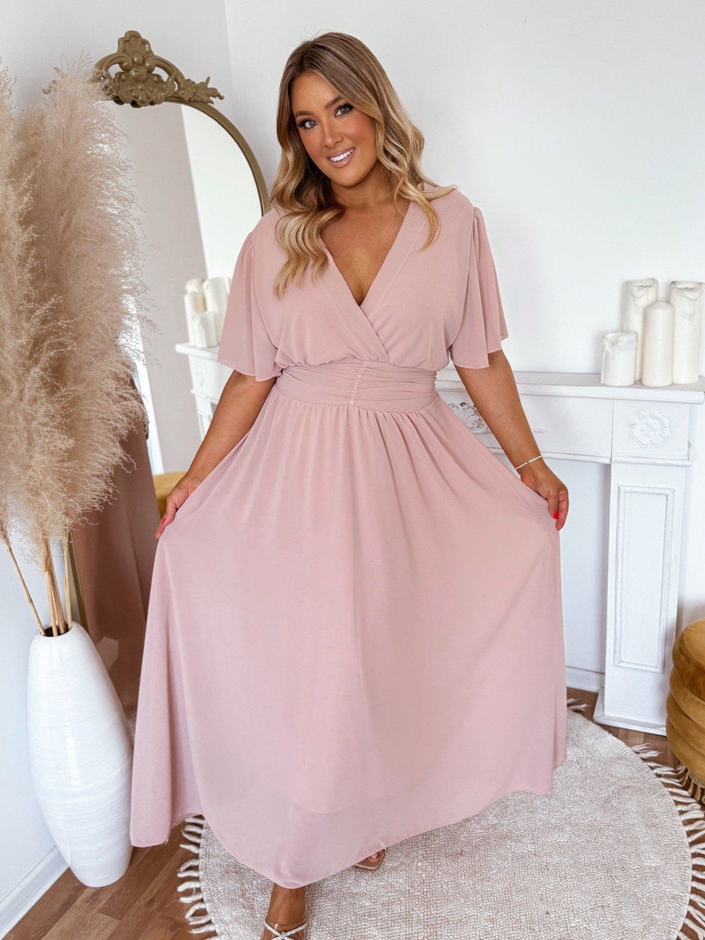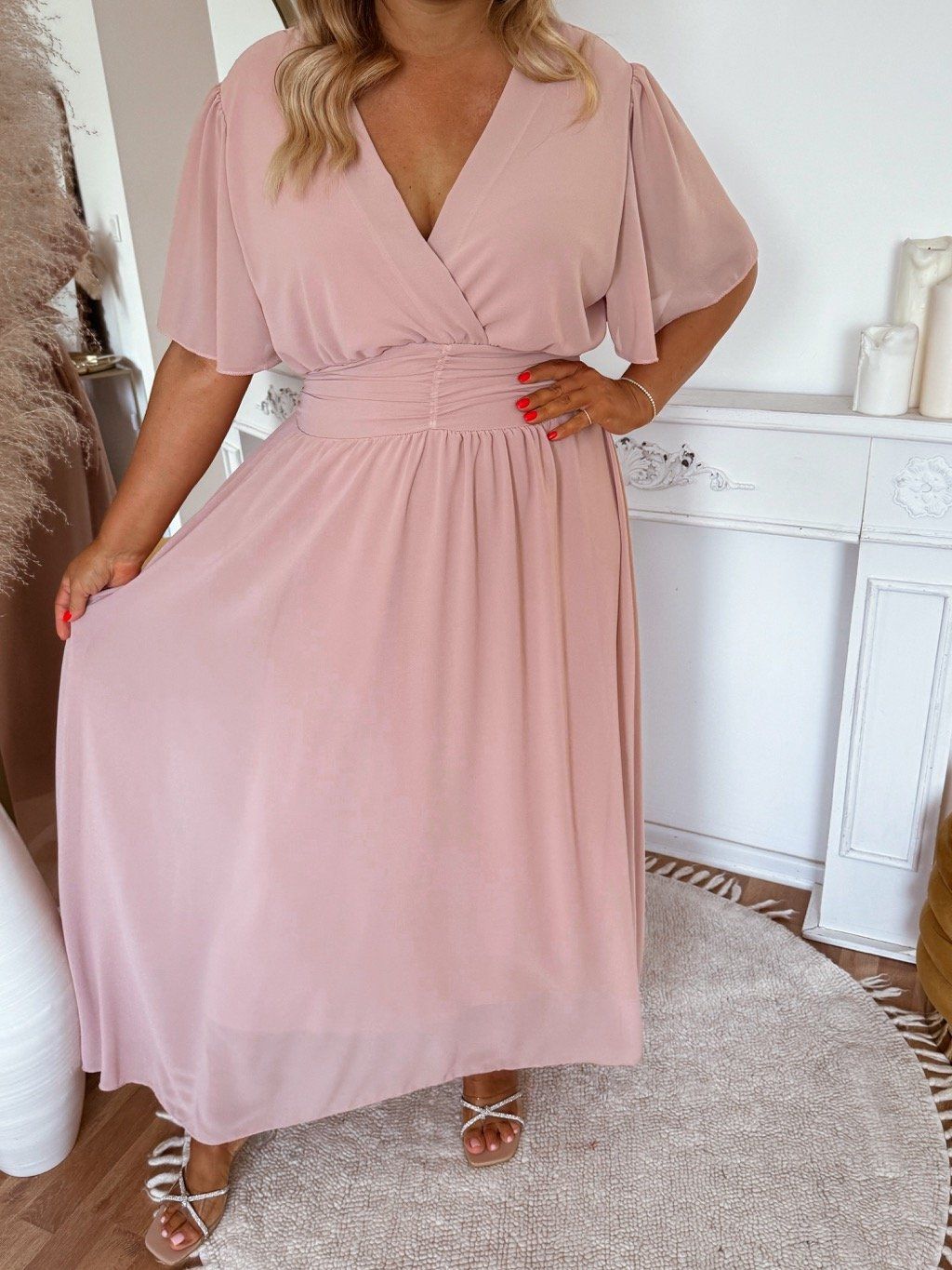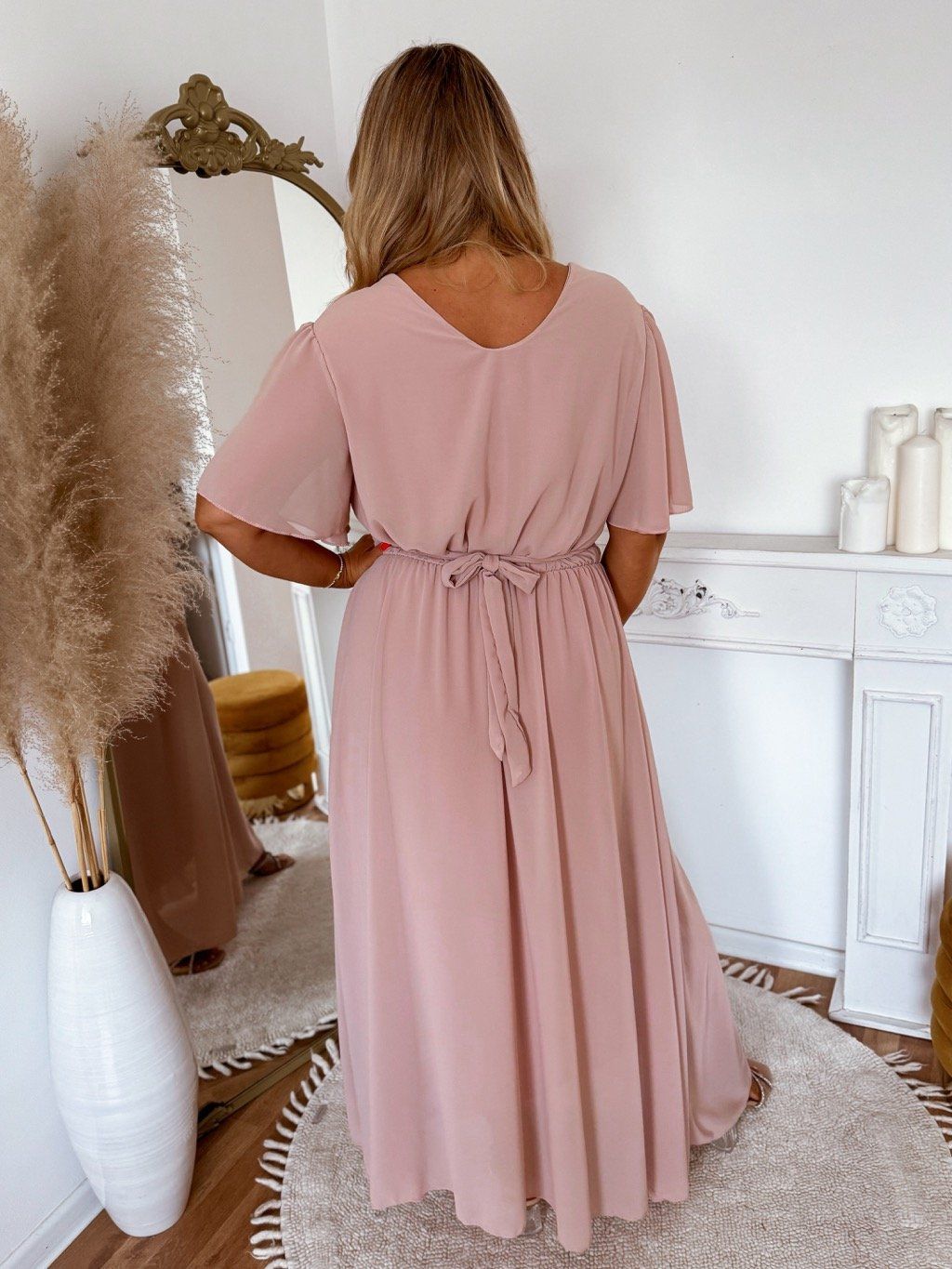 Dlouhé šaty s krátkým rukávem - pudrově růžová
