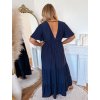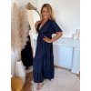 Dlouhé elegantní tmavě modré šaty pro plnoštíhlé s krátkým rukávem. Šaty mají elastickou gumu v pase a zcela volnou sukni. Modelka měří 168 cm a má na sobě velikost XL.