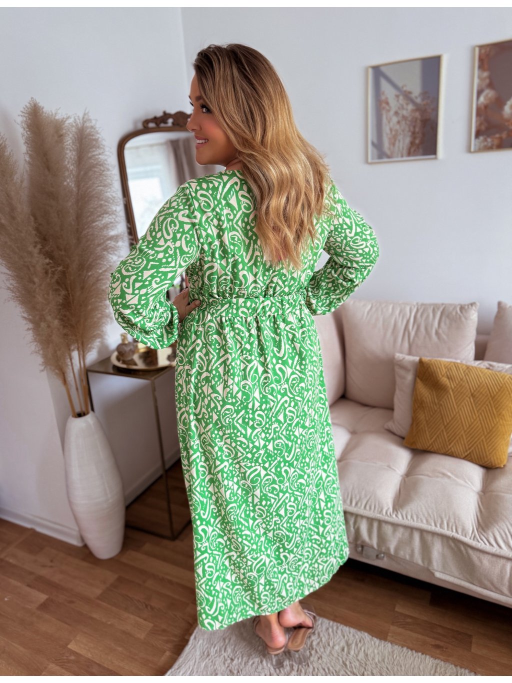 Dlouhé zeleno-krémové šaty