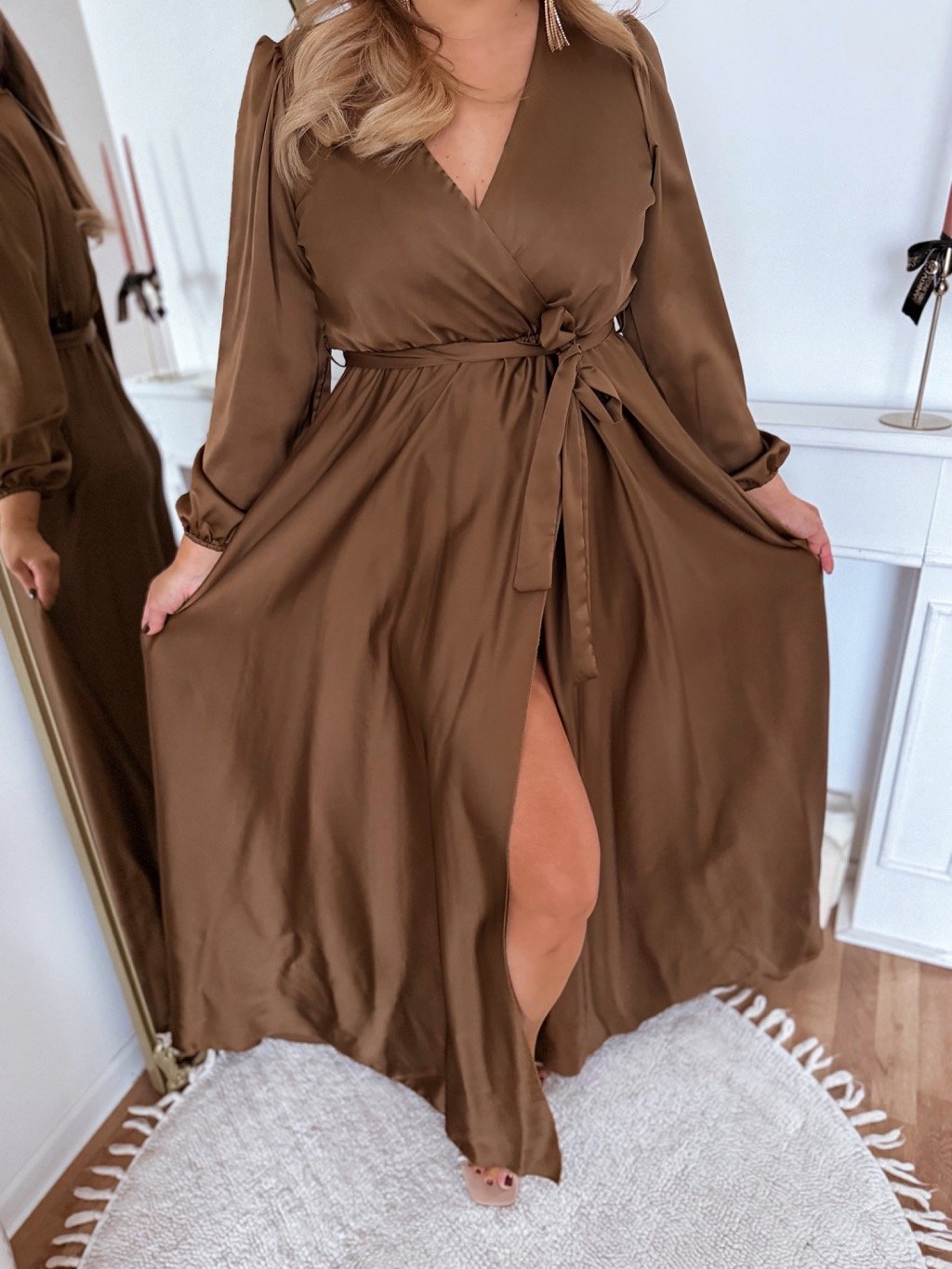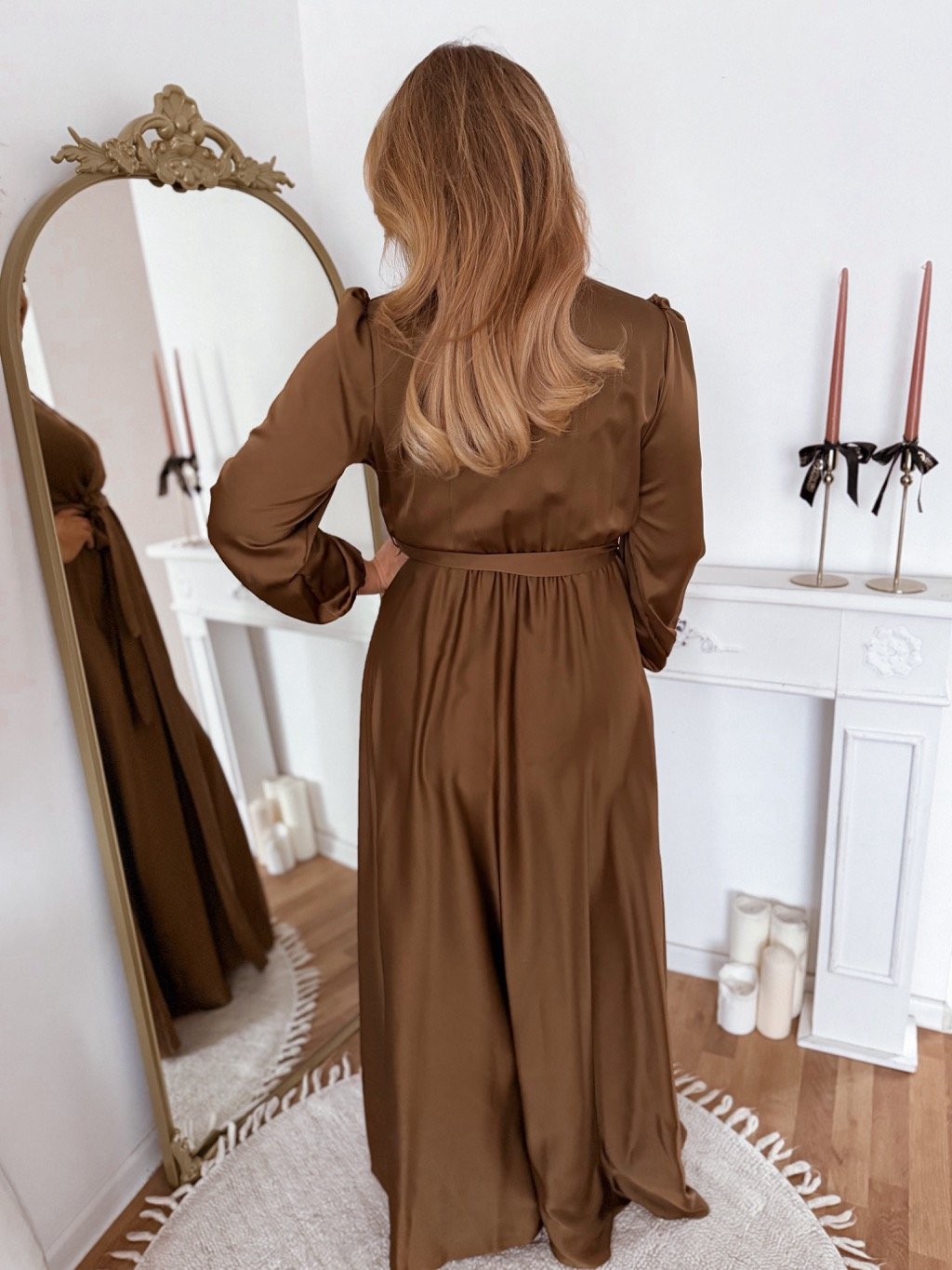 Hnědé saténové šaty
