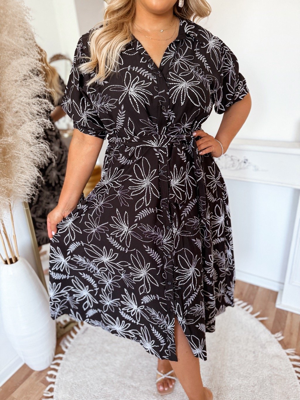 Košilové šaty s květinami – černá