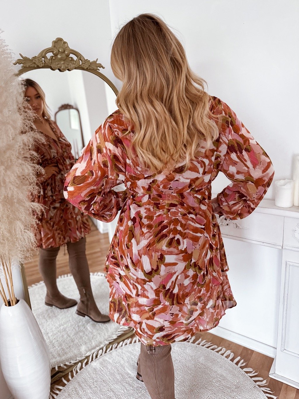 Krátké šaty se stahují šňůrkou pod prsy. Modelka měří 168 cm a má na sobě velikost L/XL.