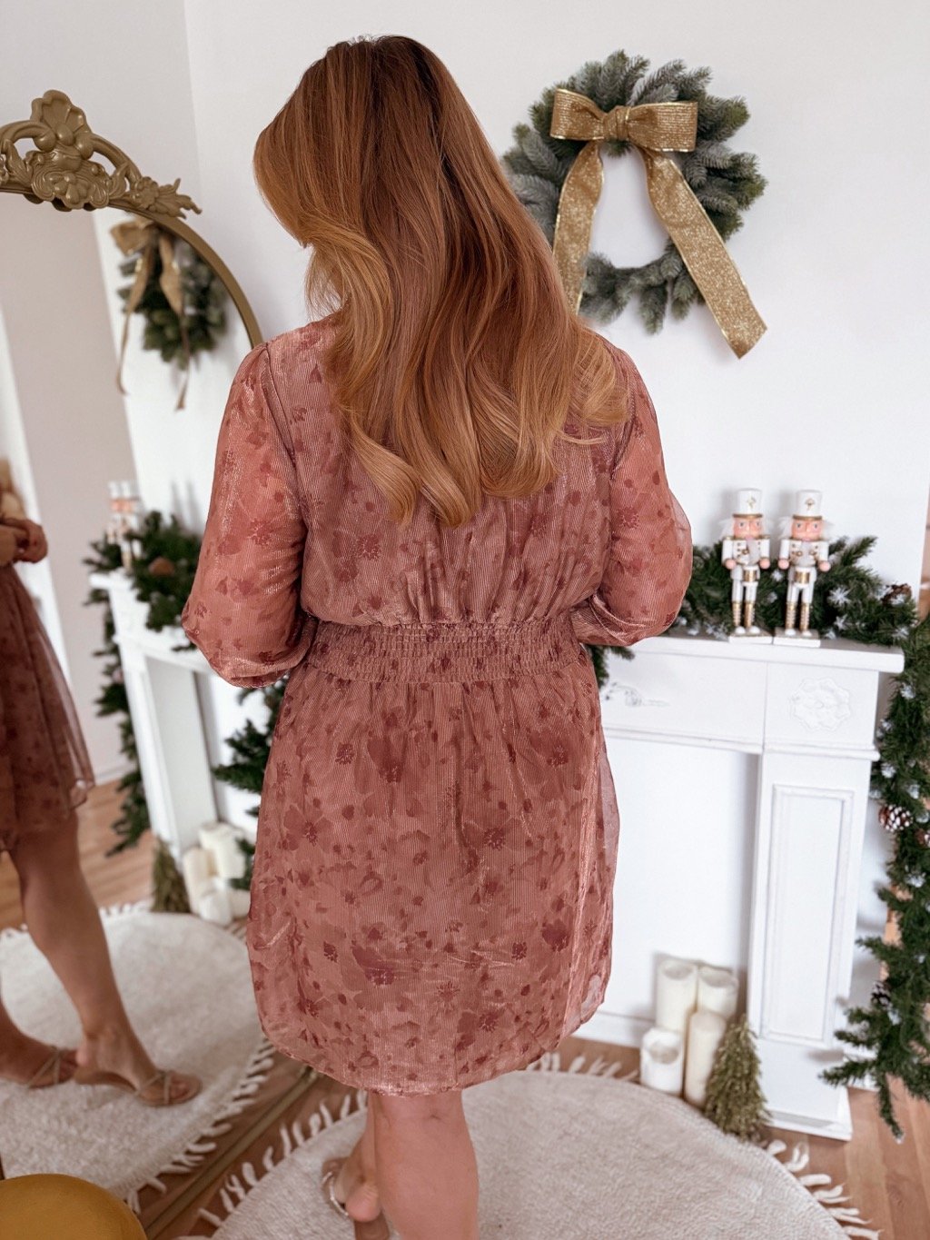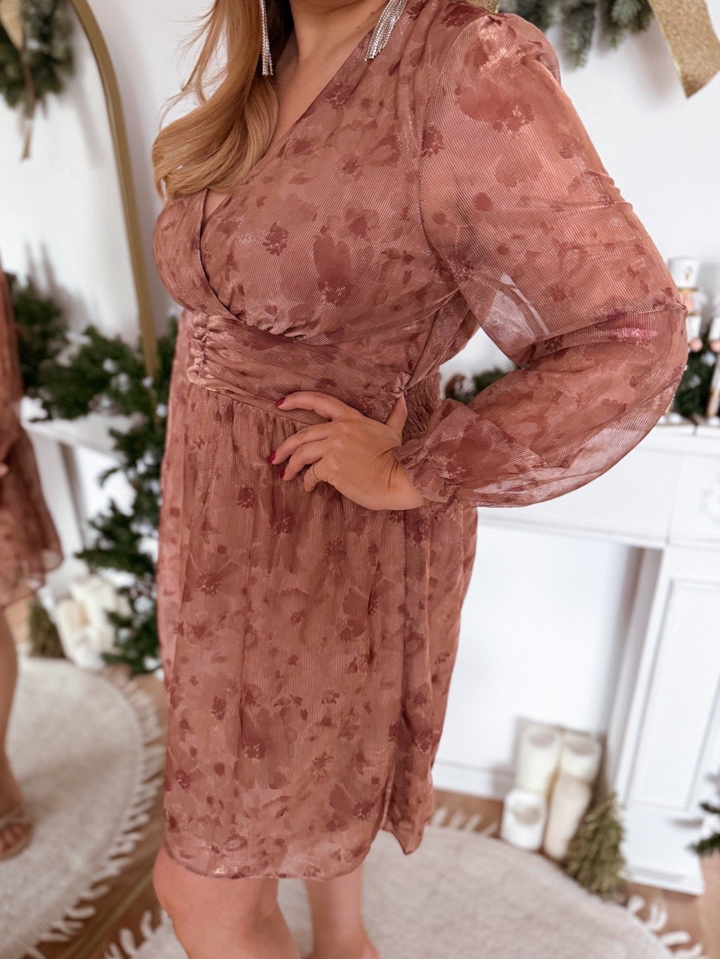 Dámské šaty s dlouhým rukávem. Šaty mají v pase gumičku. Modelka měří 168 cm a má na sobě velikost XL.