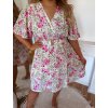 Krátké květované letní šaty s gumičkou v pase a páskem. Modelka měří 168 cm a má na sobě velikost XL.