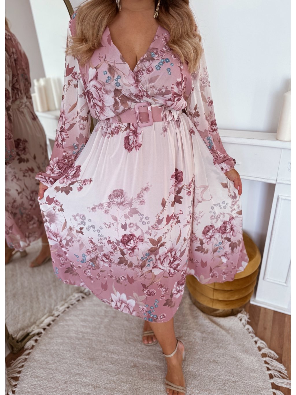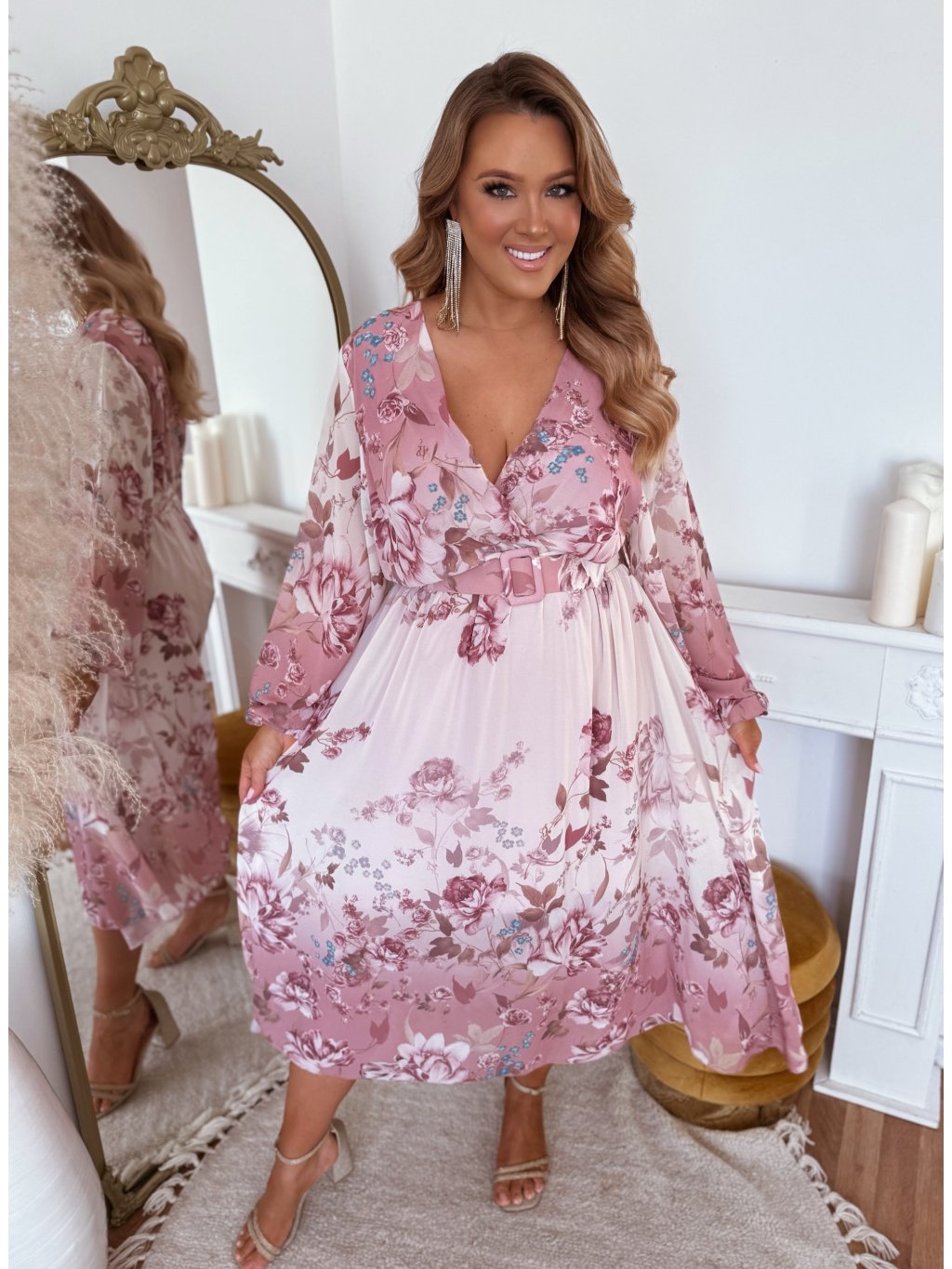 Romantické květinové midi šaty s hlubokým výstřihem do V, volnými rukávy, elastickým pasem a páskem. Šaty mají volný áčkový střih který lichotí postavě a krásně zvýrazňuje pas. Lehký, prodyšný složení materiálu je ideální pro celodenní nošení, ať už na oslavy, svatby, nebo romantické procházky. Šaty jsou vhodné pro velikosti XL- 4XL. Modelka měří 168 cm a má na sobě univerzální velikost.
