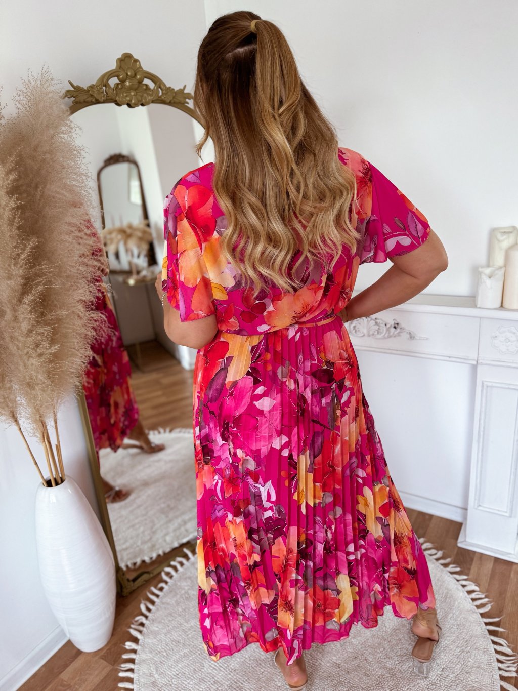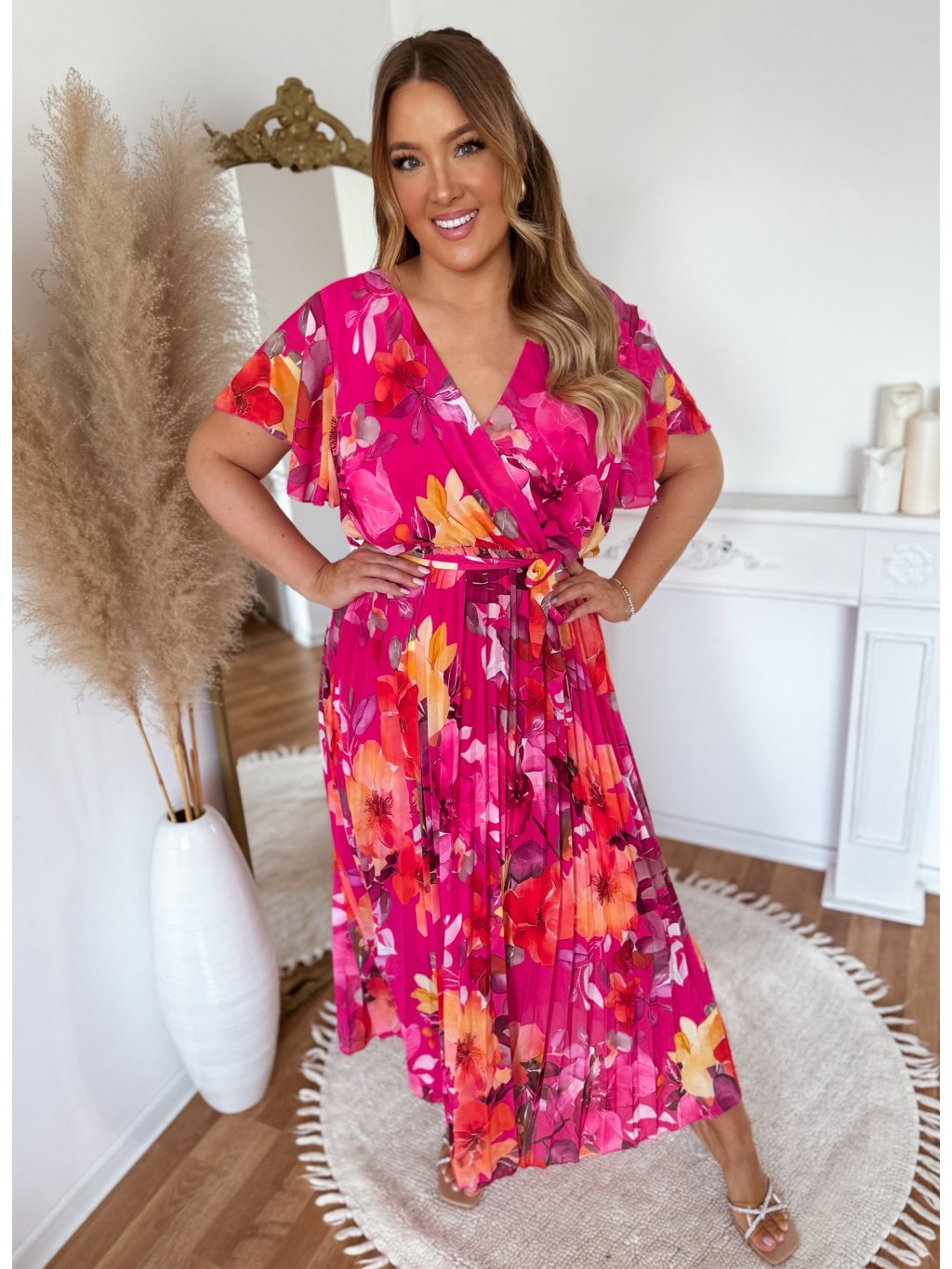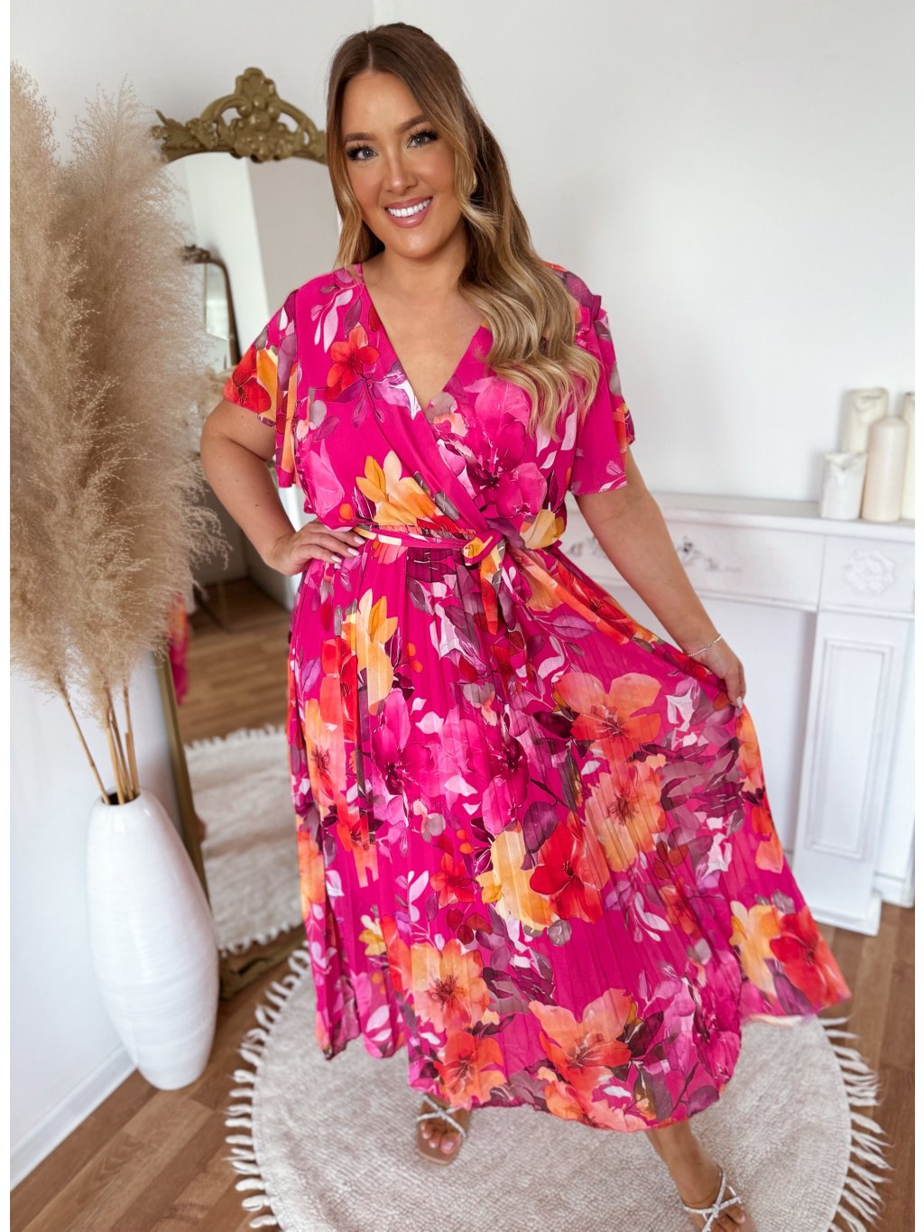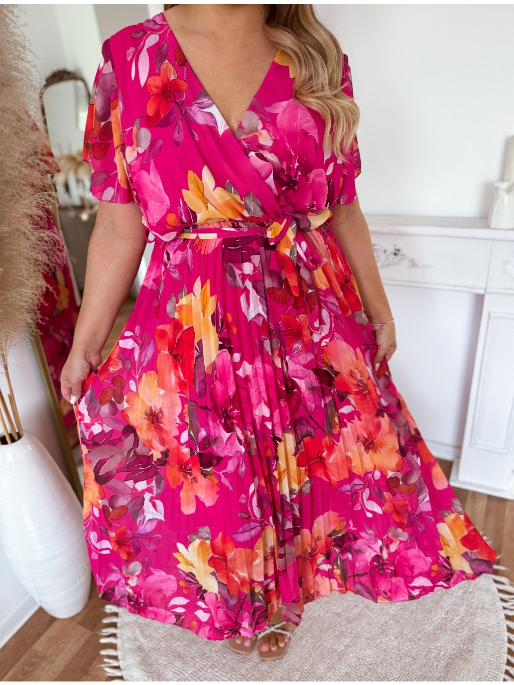 Květované šaty s plisovanou sukní - růžová