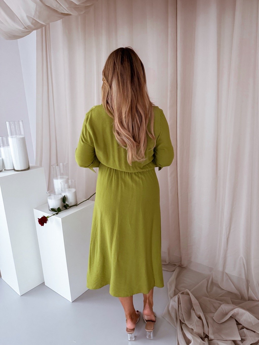 Košilové šaty jsou jemně zúžené v pase, na šatech je našitý dekorativní pásek, sukně je zcela volná. Košilové šaty jsou elastické. Modelka měří 168 cm a má na sobě velikost XL.