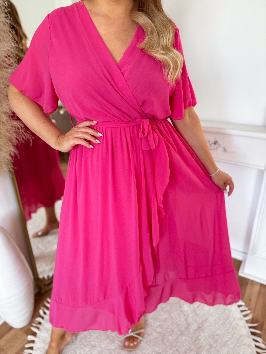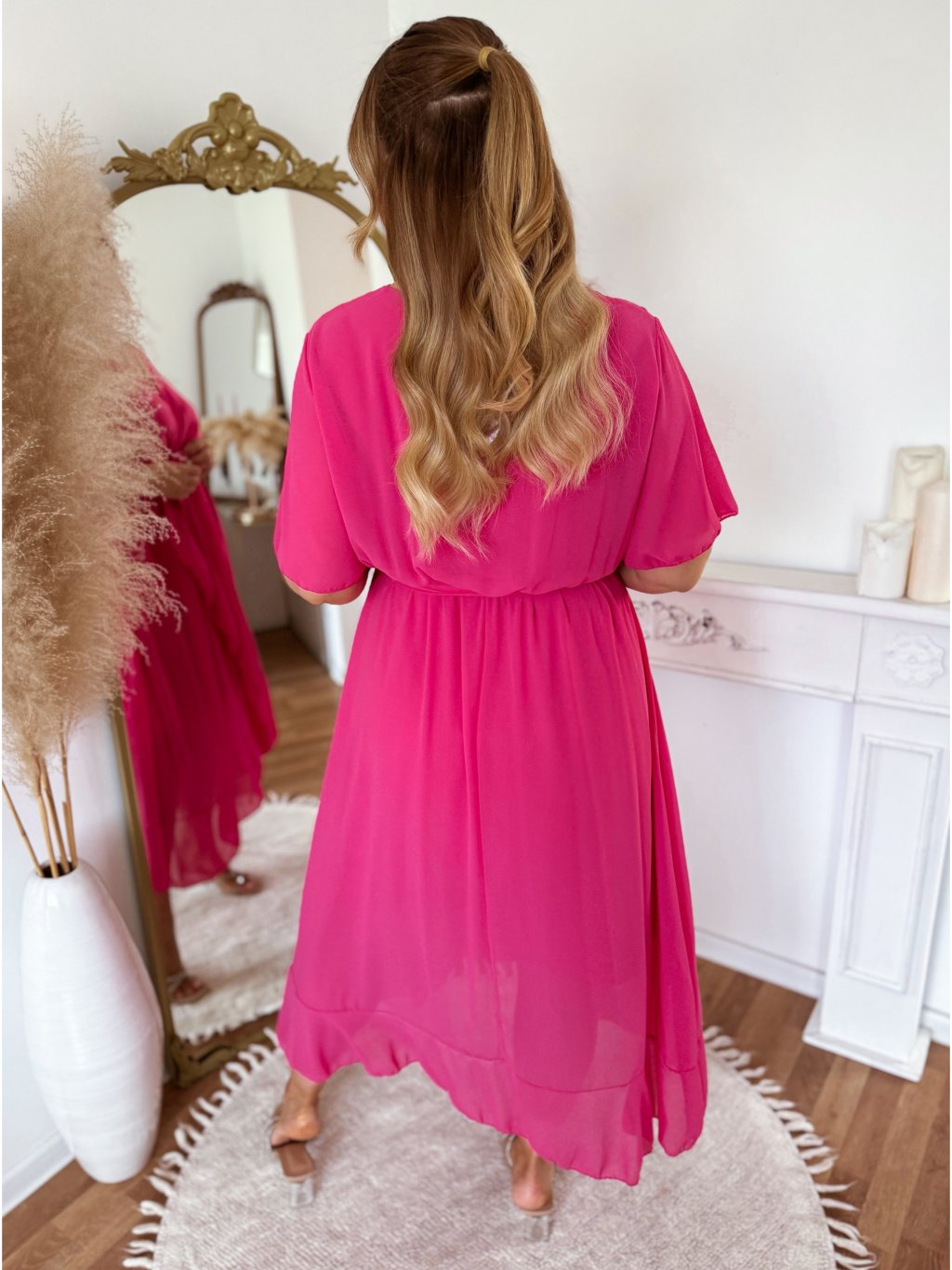 Elegantní dámské šaty s krátkým rukávem a volnou sukní. Šaty mají volný střih a v pase jsou obšité gumičkou. Modelka měří 168 cm a má na sobě velikost XL/XXL.