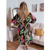Dámské šaty s knoflíky na prsou a gumou pod prsy. Šaty mají zcela volnou sukni a jsou mírně elastické. Rukávy šatů lze ohrnout a zapnout knoflíkem na rukávech. Modelka měří 168 cm a má na sobě velikost XL.
