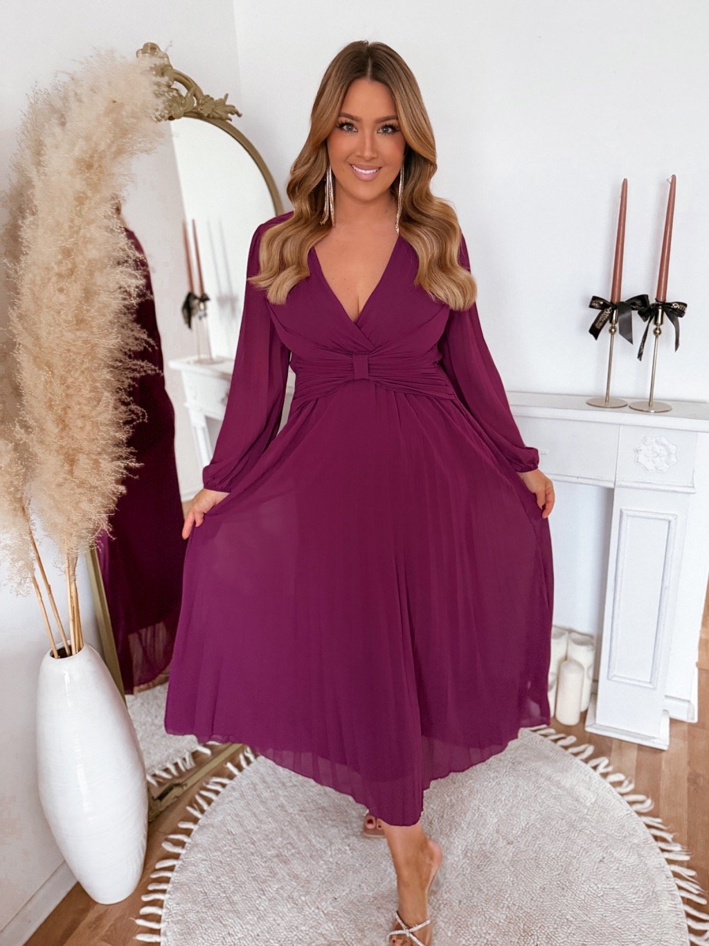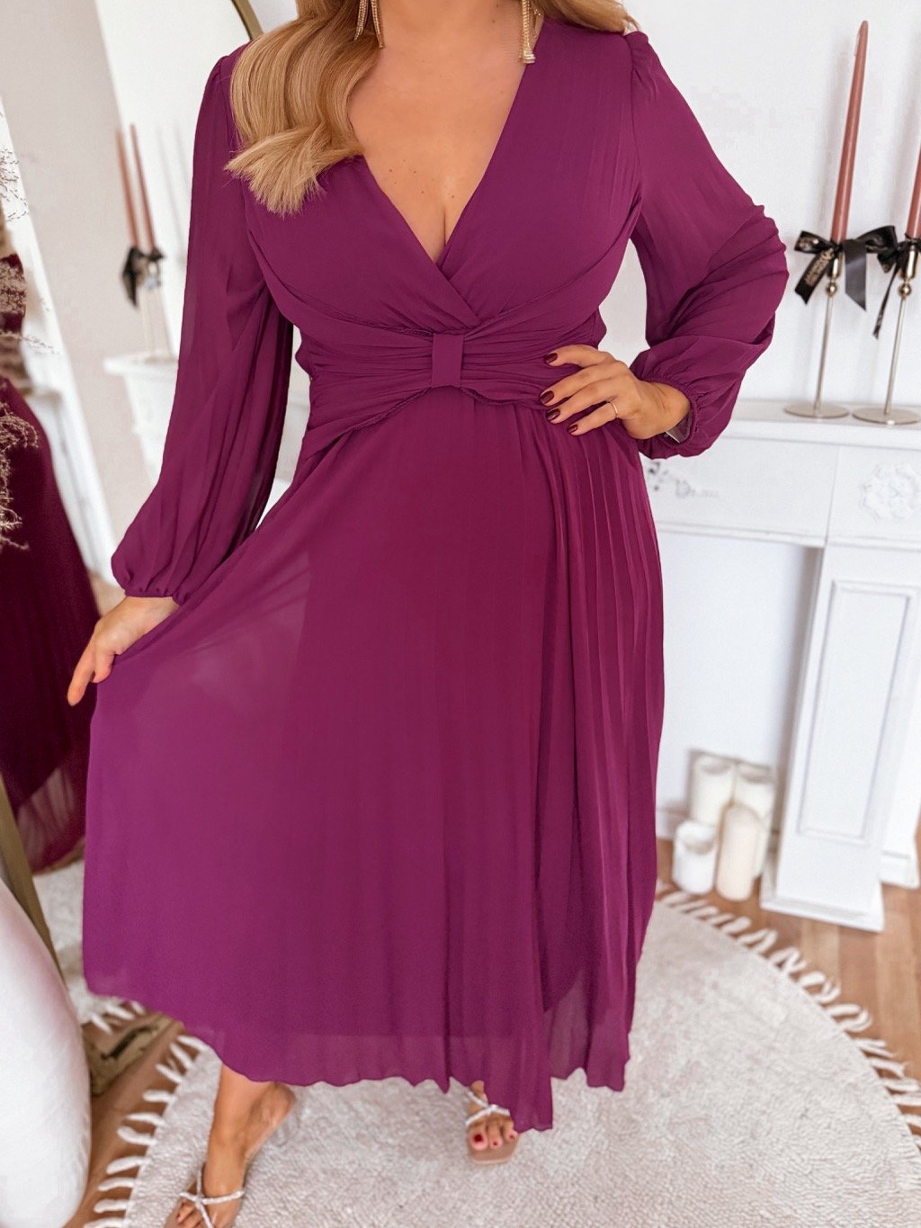 Purpurové plisované šaty