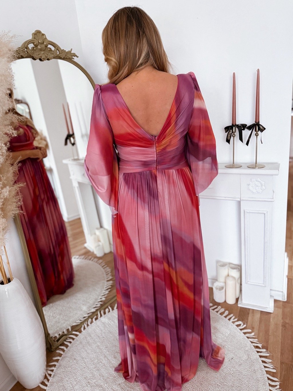 Společenské elastické šaty se zipem na zádech a rozparkem. Večerní šaty mají jemné vyztužení na hrudi a vycpávky na ramenou. Modelka měří 168 cm a má na sobě velikost 2XL/3XL.