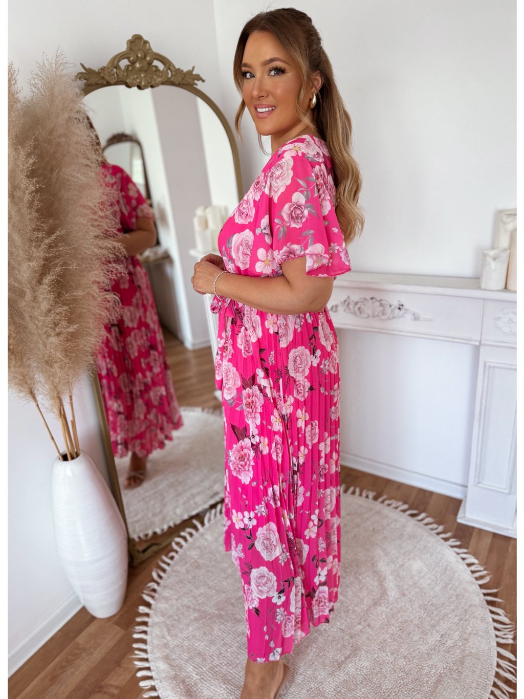 Šaty se vzorem růží - růžová