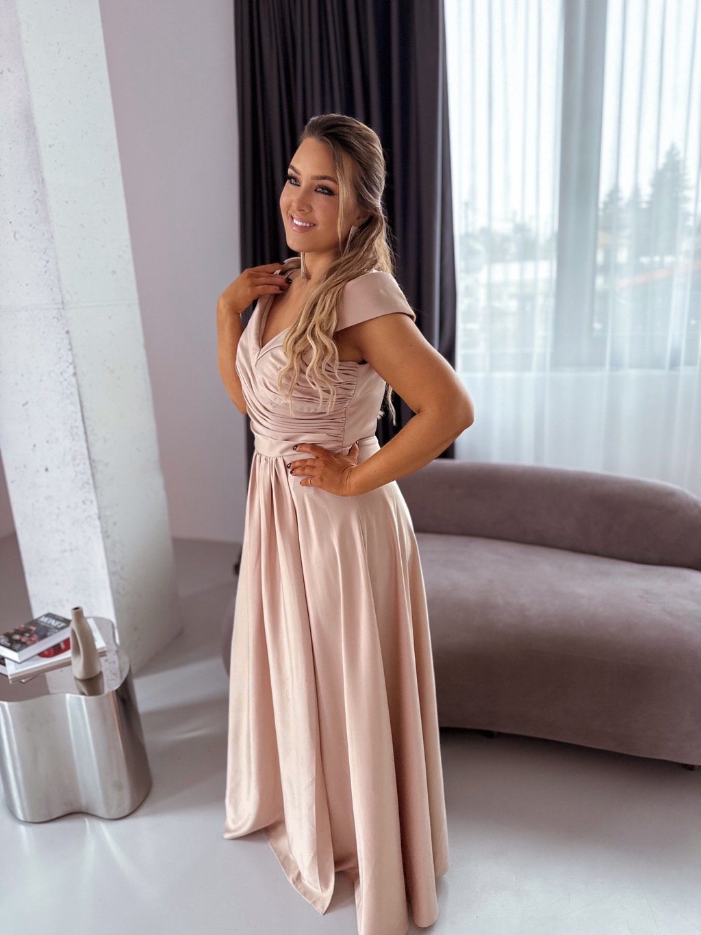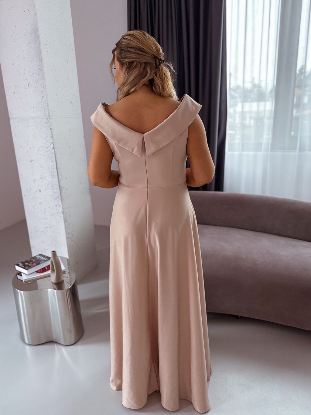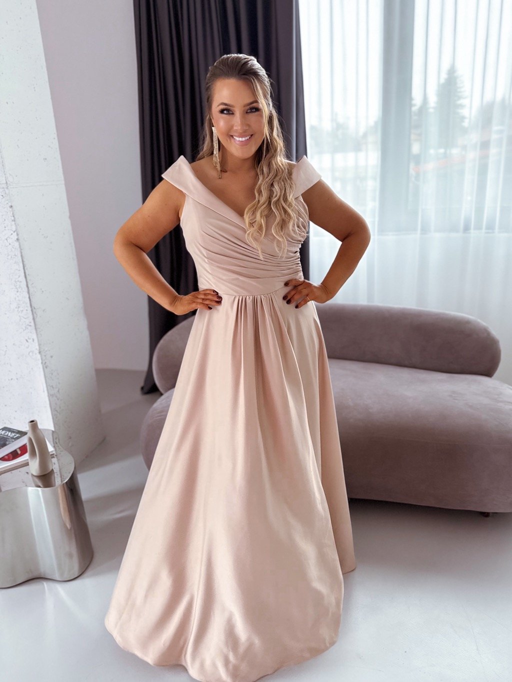 Společenské šaty s odhalenými rameny - béžová