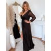 Elegantní společenské šaty pro plnoštíhlé s hlubokým výstřihem jsou vyrobeny z velmi elastického materiálu, mají zip na zádech a jemnou výztuž na prsou. Rukávy jsou průhledné a jsou zdobené kamínky. Modelka měří 168 cm a má na sobě velikost XXL.