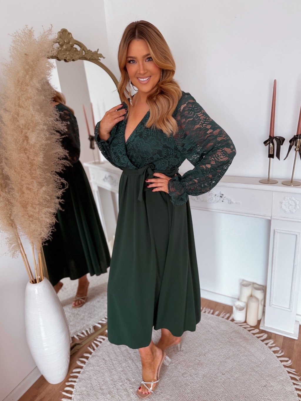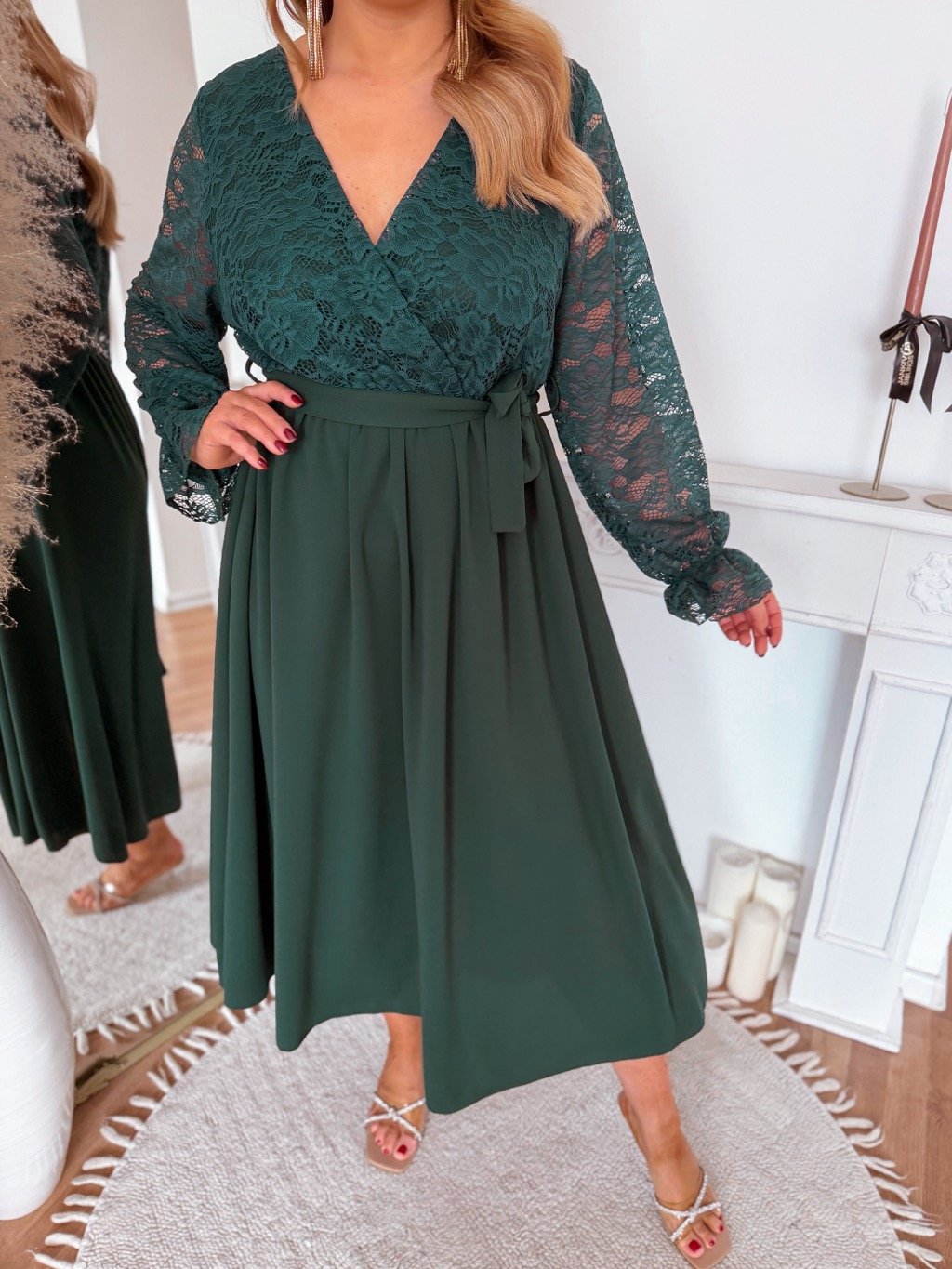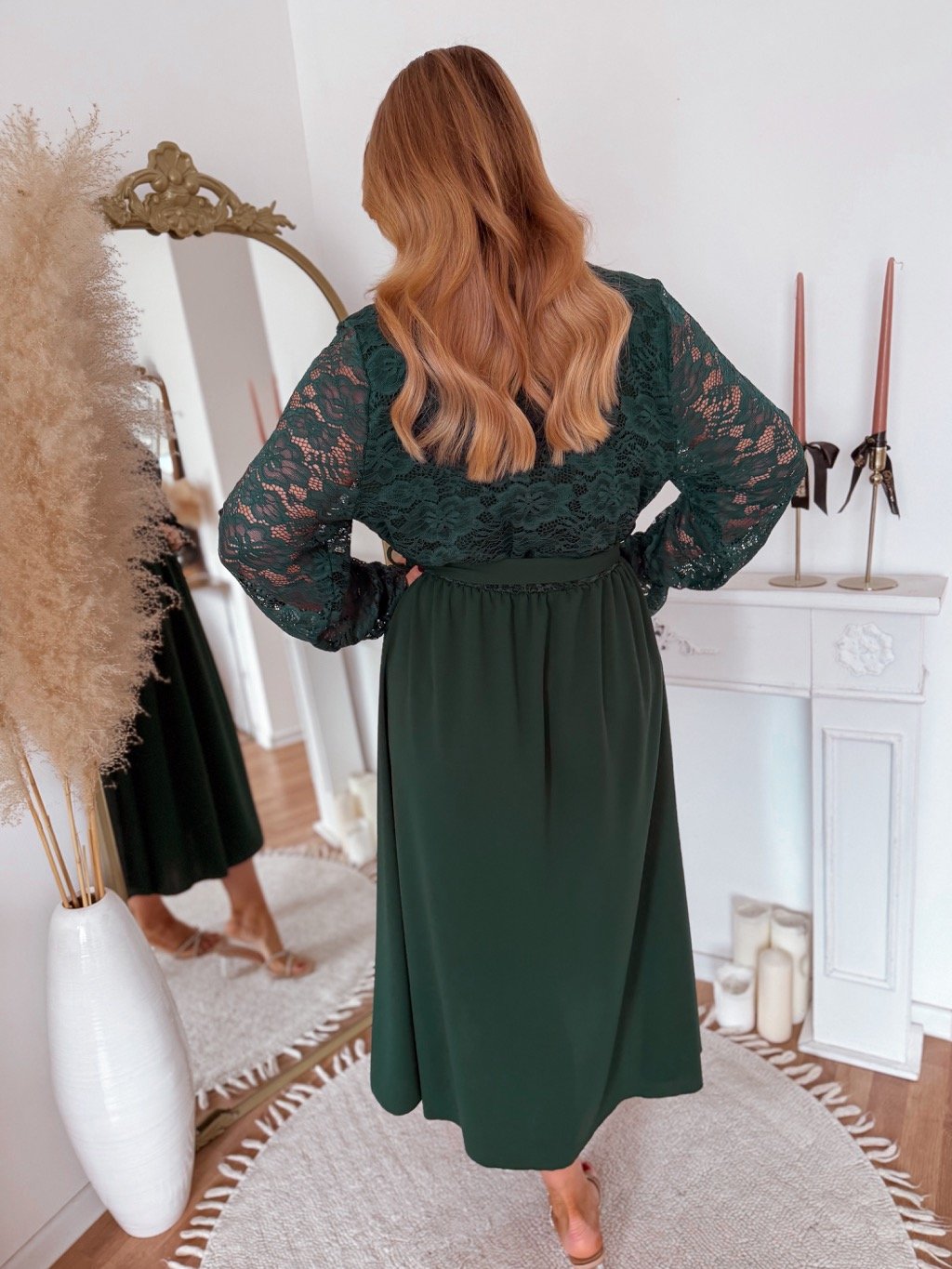Tmavě zelené šaty s krajkovým vrškem