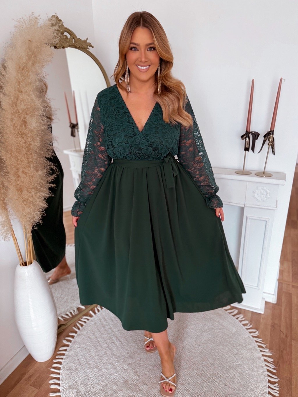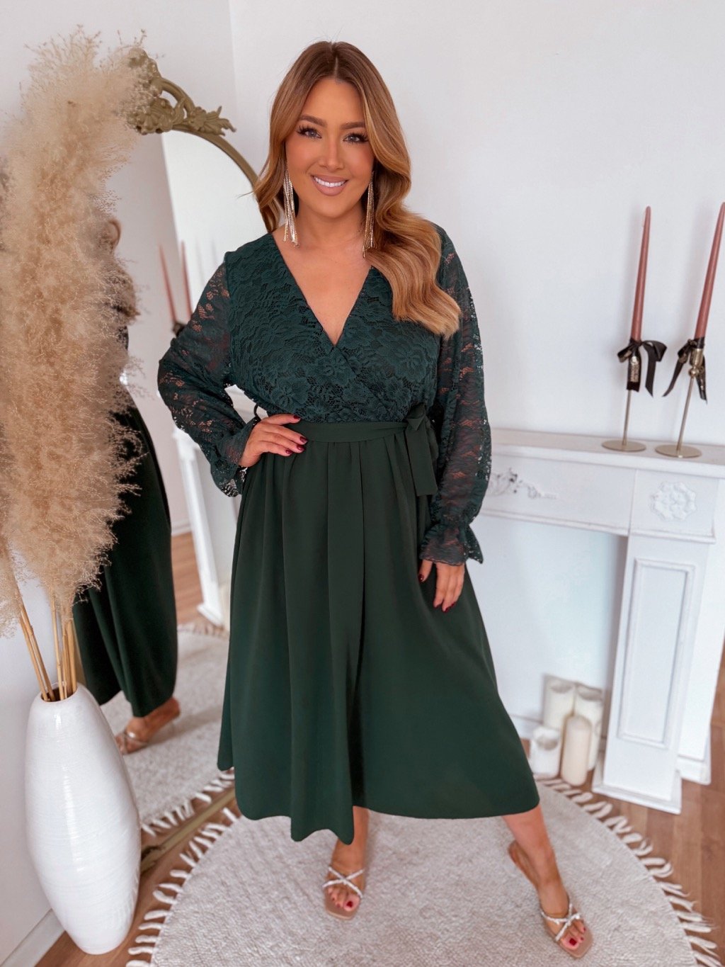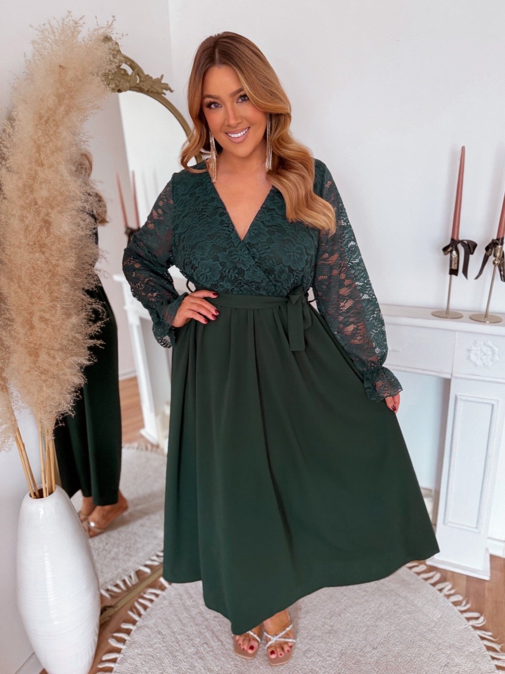 Tmavě zelené šaty s krajkovým vrškem