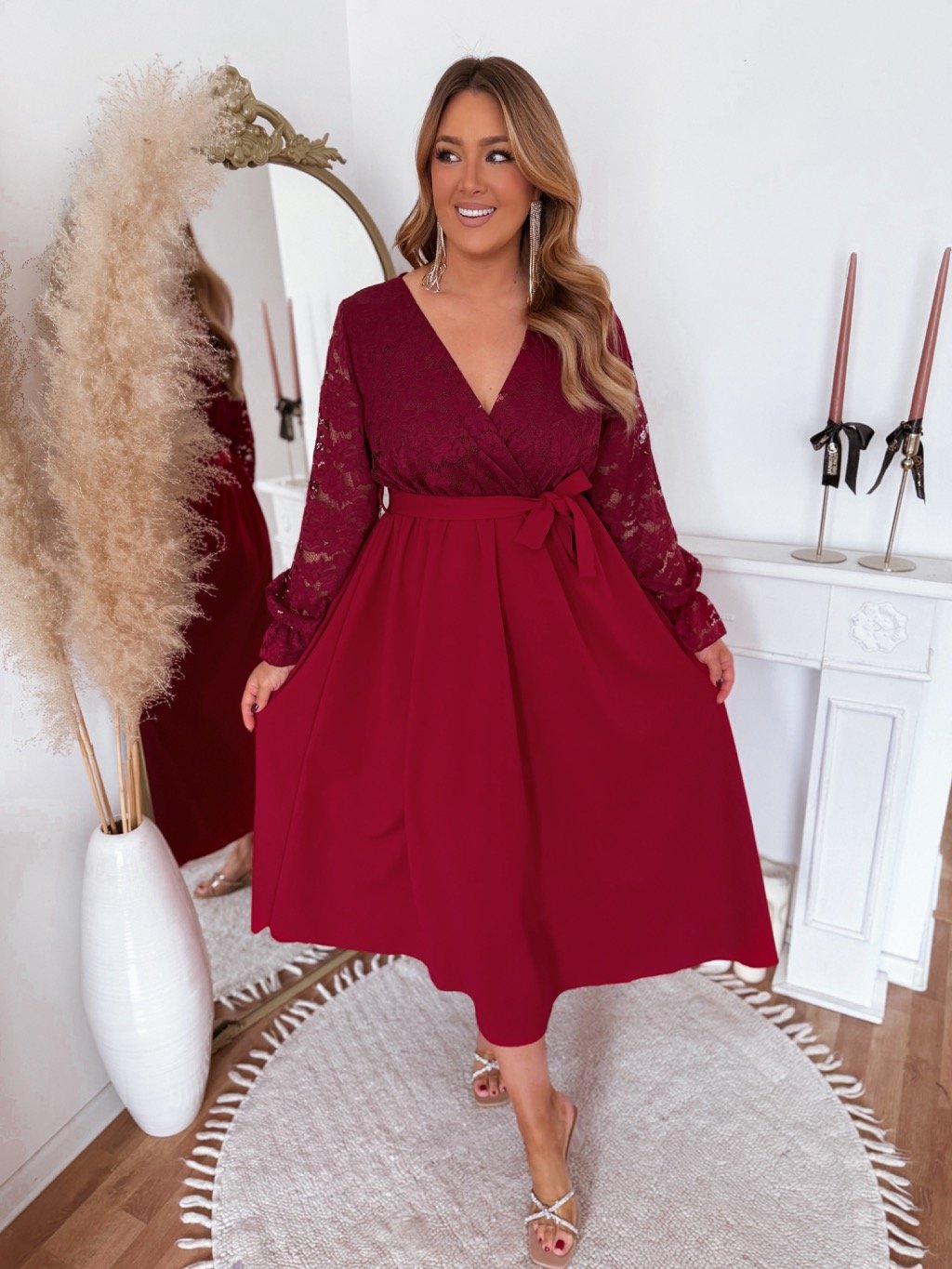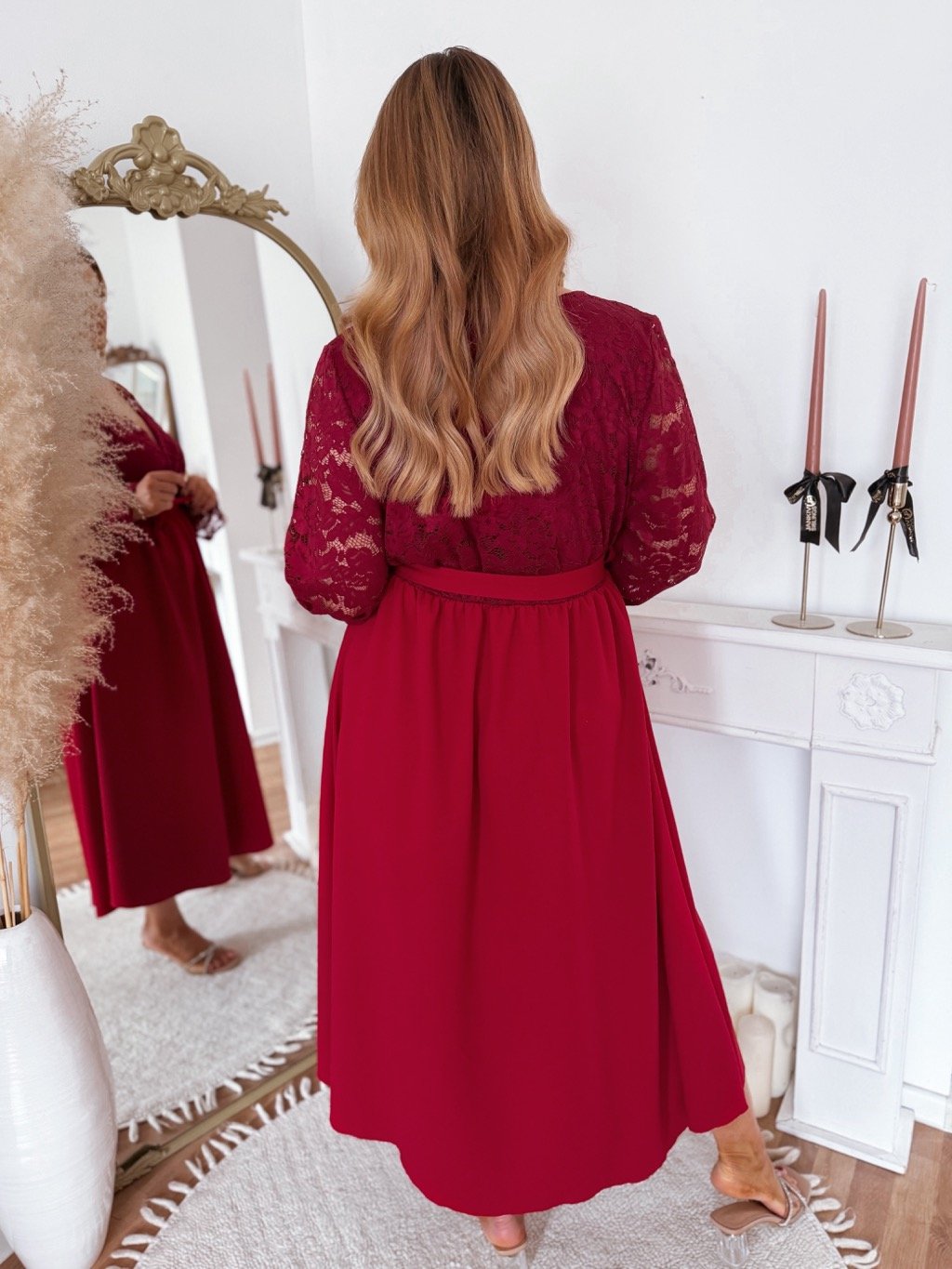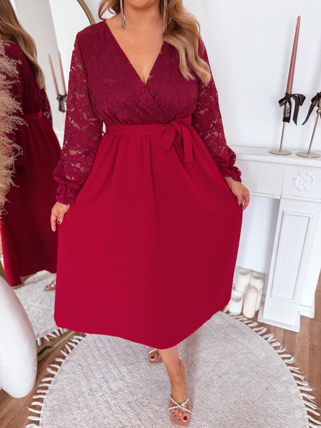 Elegantní dámské šaty s krajkovaným vrškem, gumou v pase a zcela volnou sukní. Šaty jsou elastické. Modelka měří 168 cm a má na sobě velikost XL/XXL.