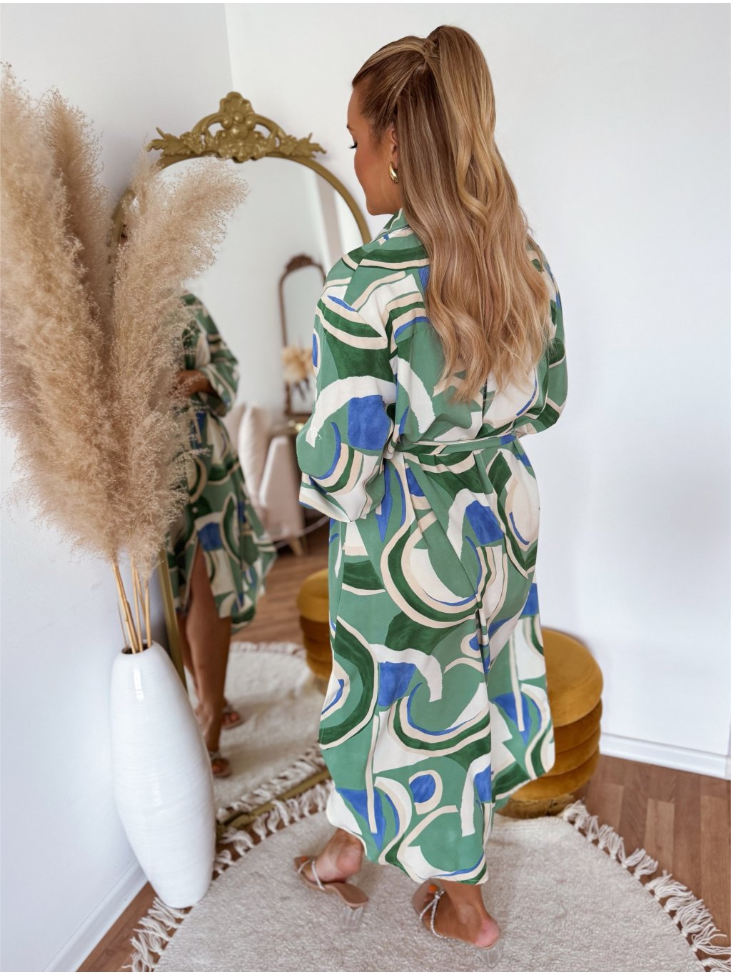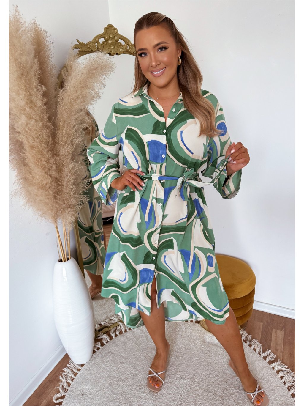 Vzorované košilové šaty v zelené