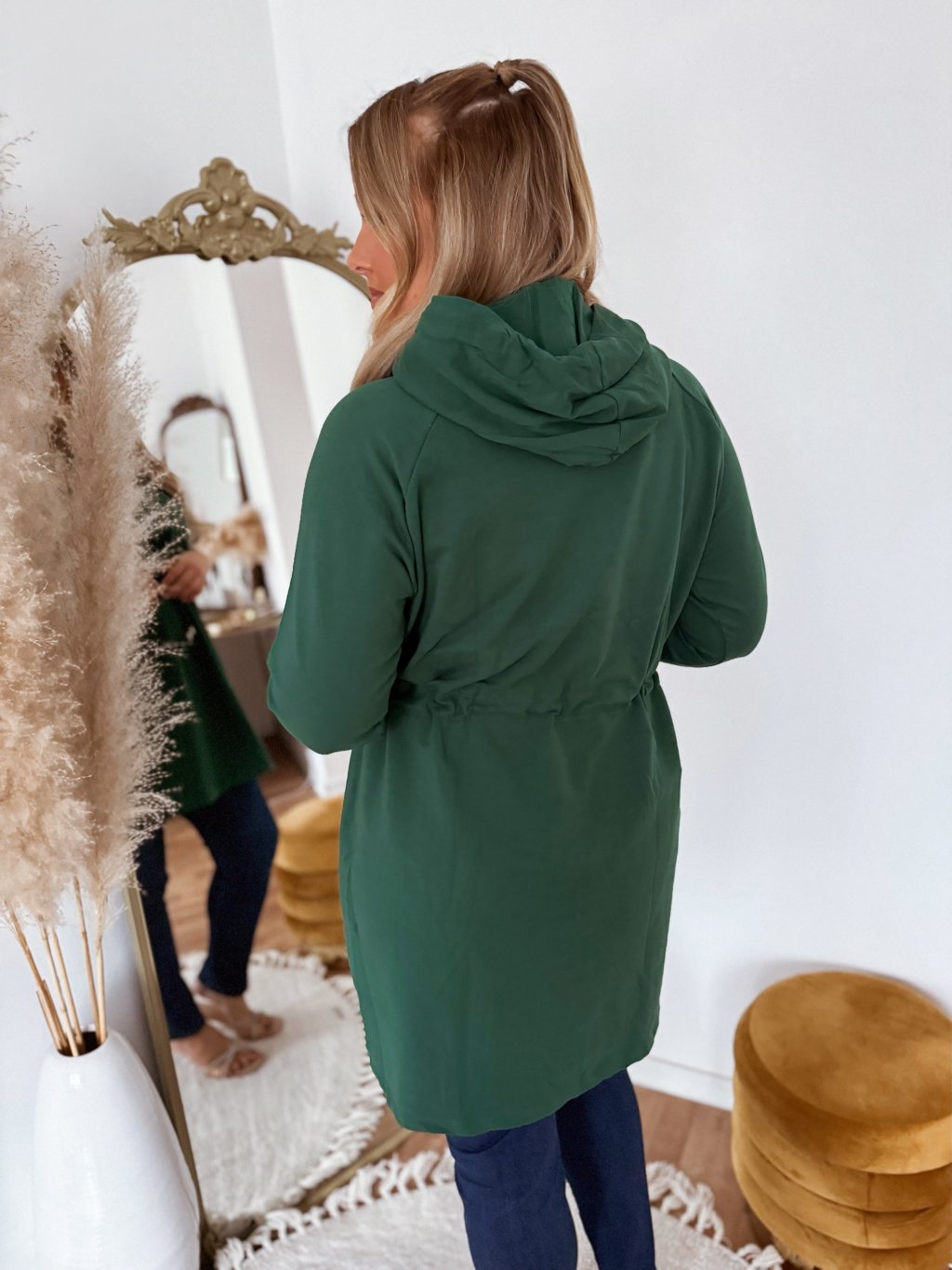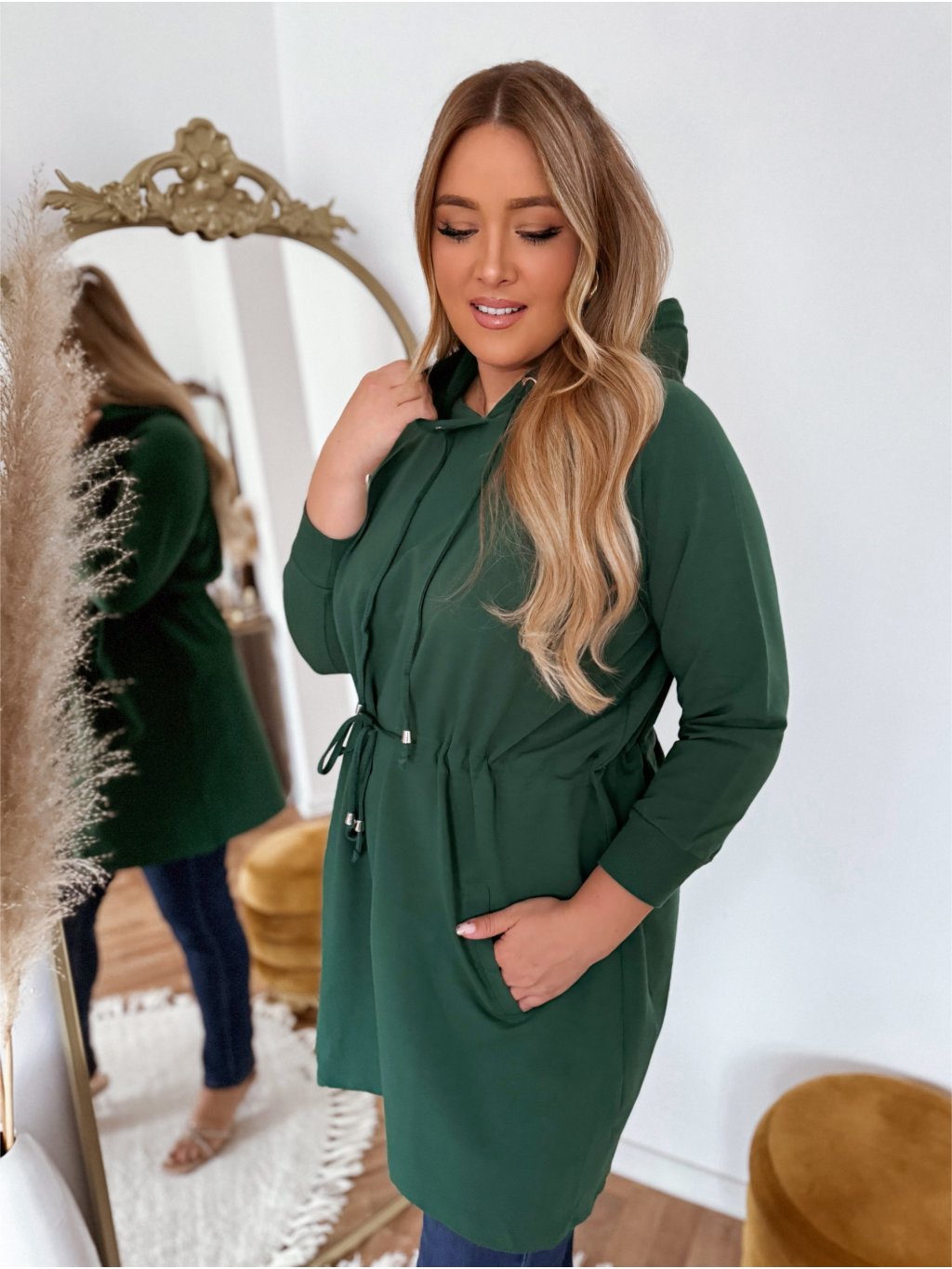 Prodloužená mikina v tmavě zelené