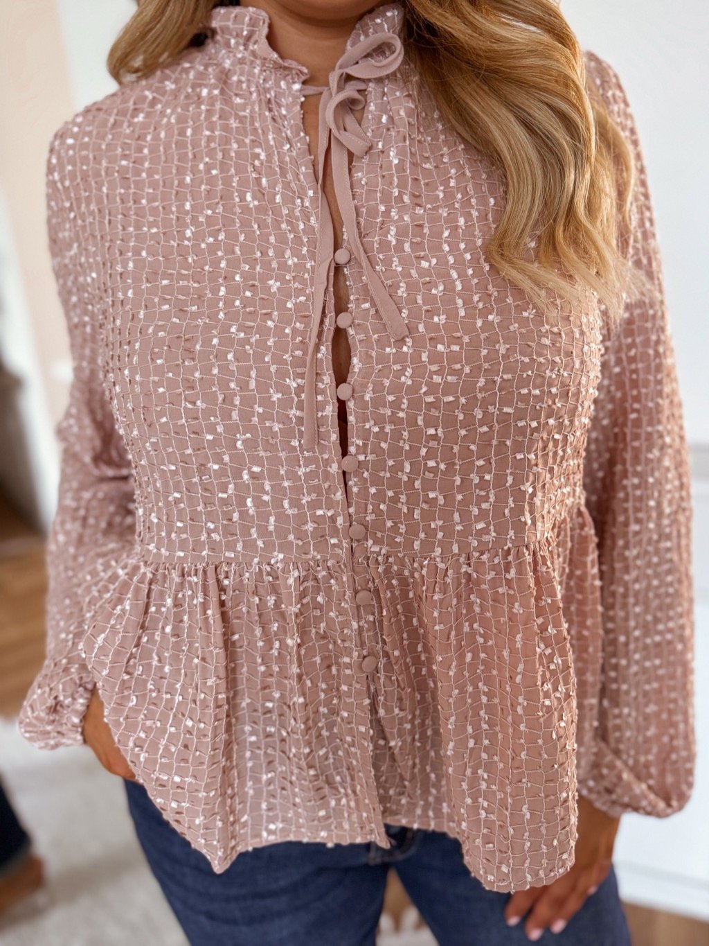 Světle růžová halenka s knoflíky